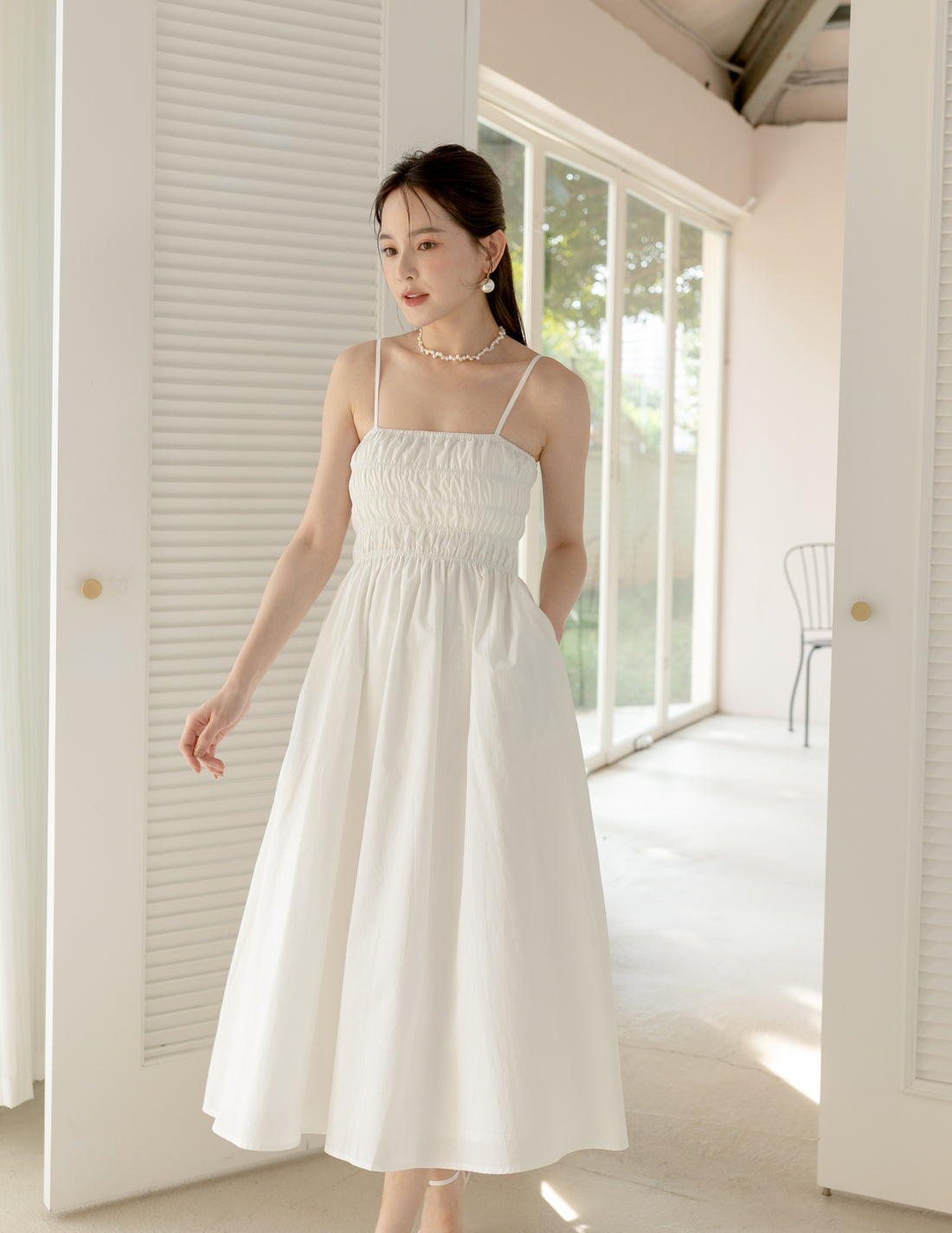 Information Fully lined Adjustable straps Smocked bodice Side pockets Also available in Brown and Blue Composition 100% Cotton...