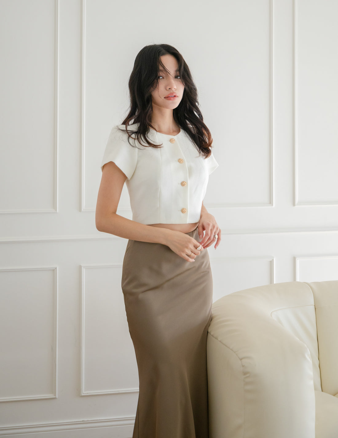 Madison Midi Skirt in Beige