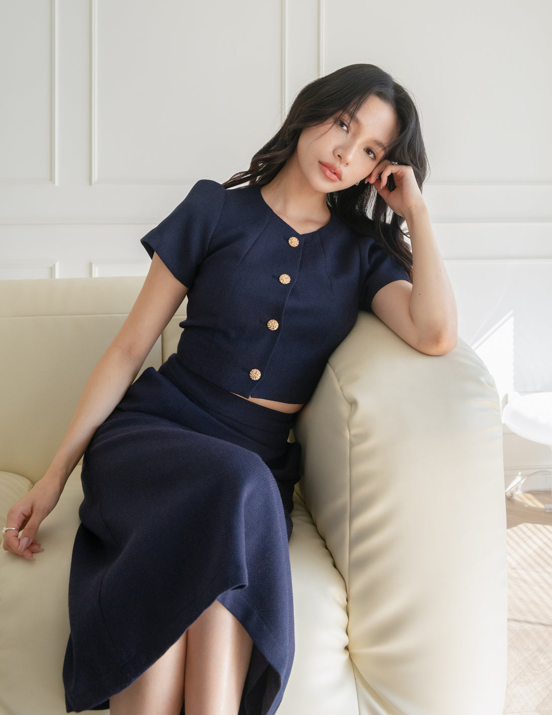 Liora Tweed Crop Top in Navy