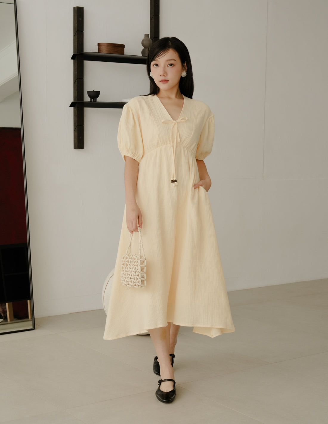 Millie Muslin Midi Dress in Butter Yellow