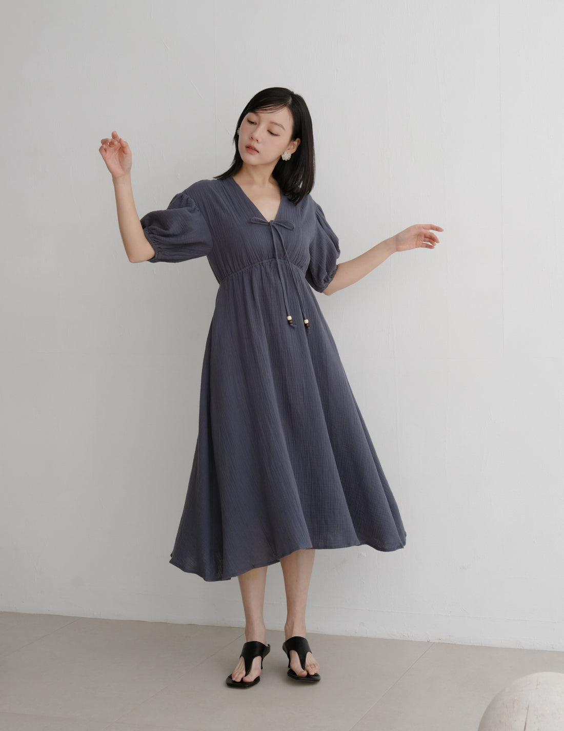 Millie Muslin Midi Dress in Ash Navy