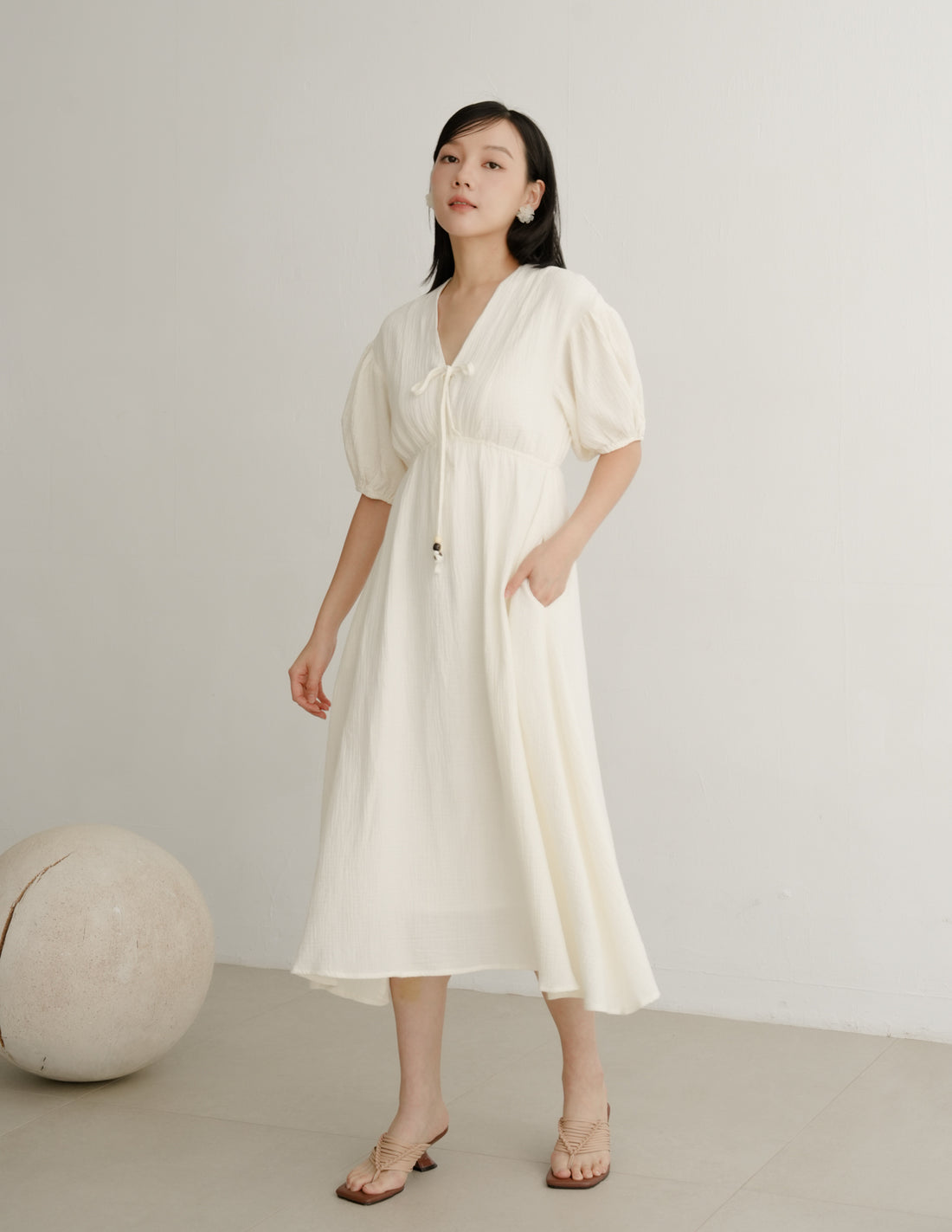 Millie Muslin Midi Dress in Ivory