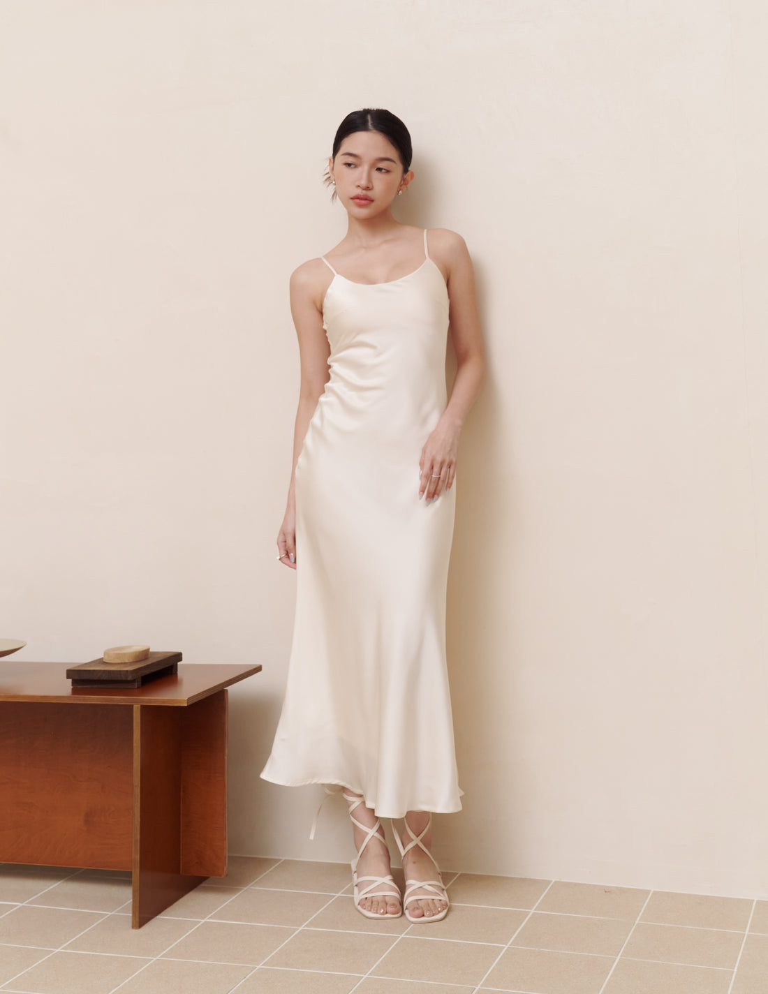 Mila Jacquard Cheongsam Midi Dress in Ivory