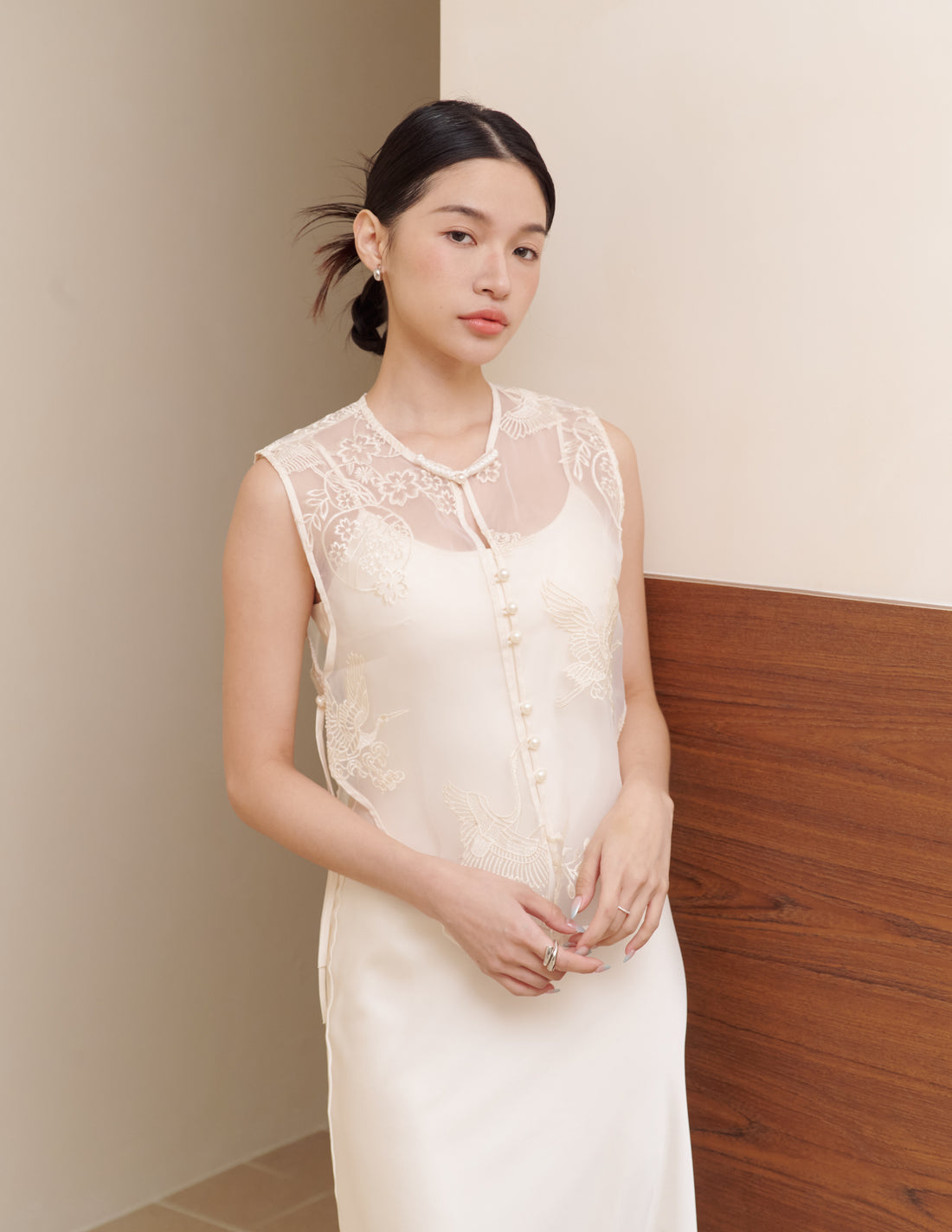 Lumi Jacquard Cheongsam Min Dress in Ivory