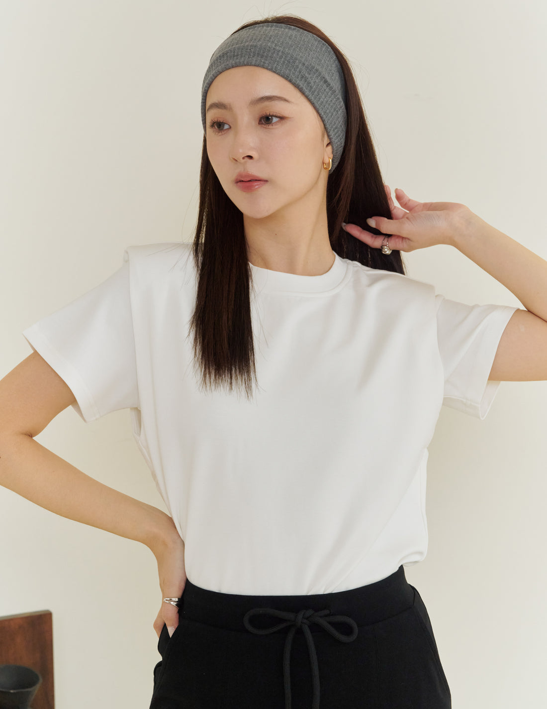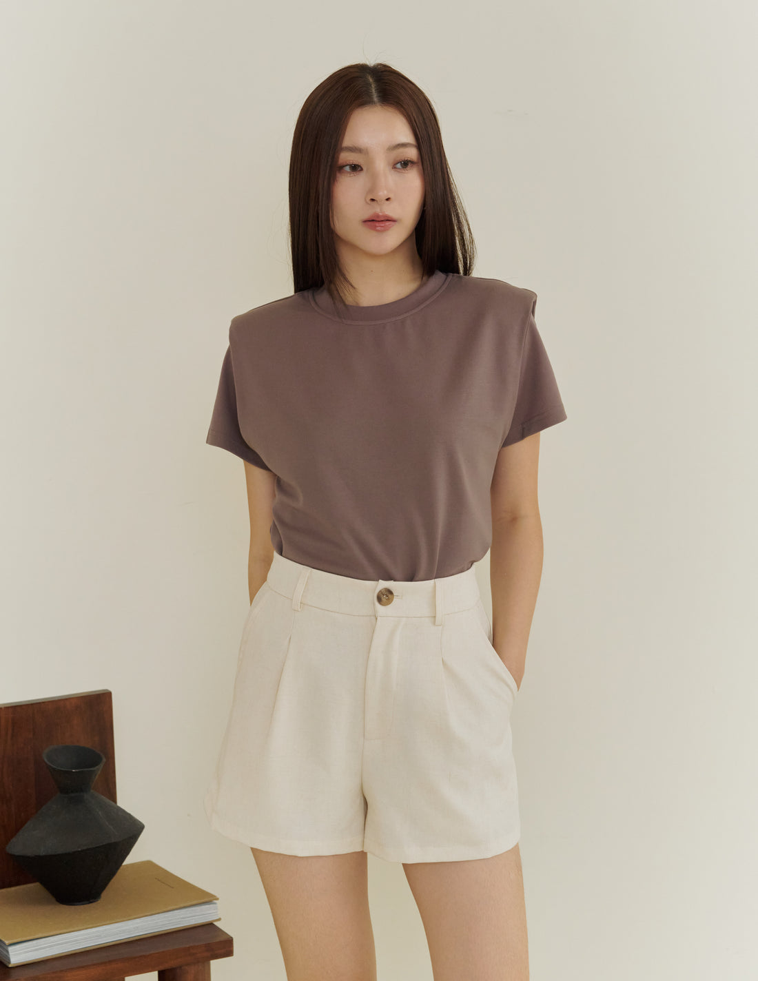 Gigi Shoulder Padded Muscle Tee in Taupe