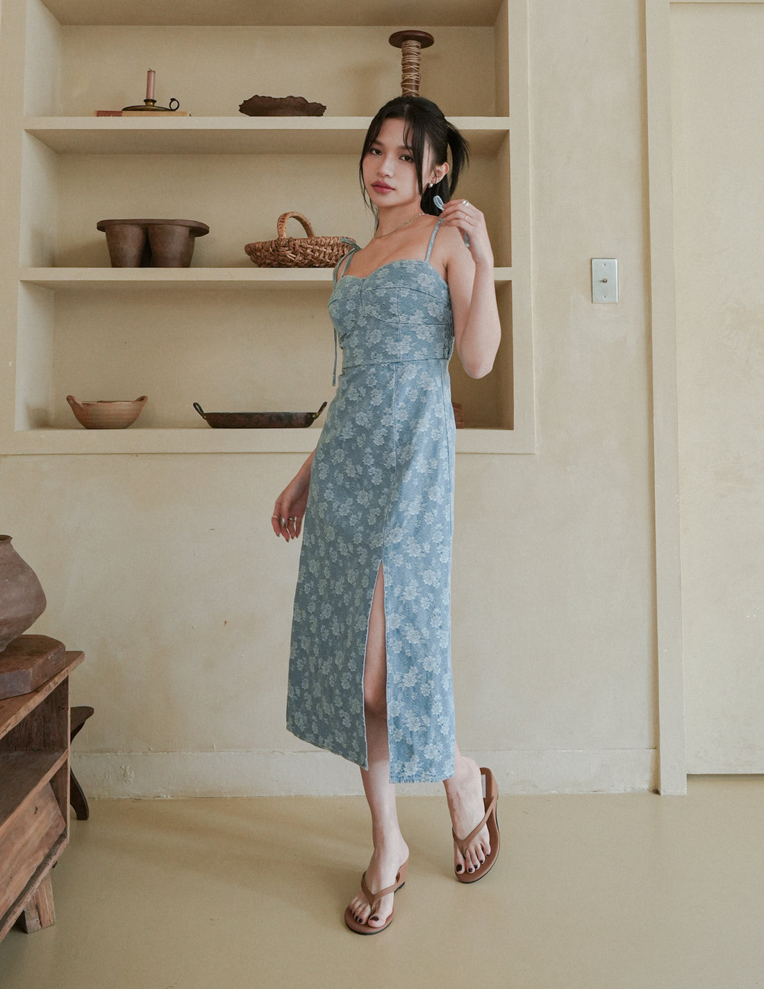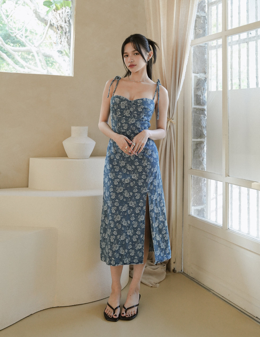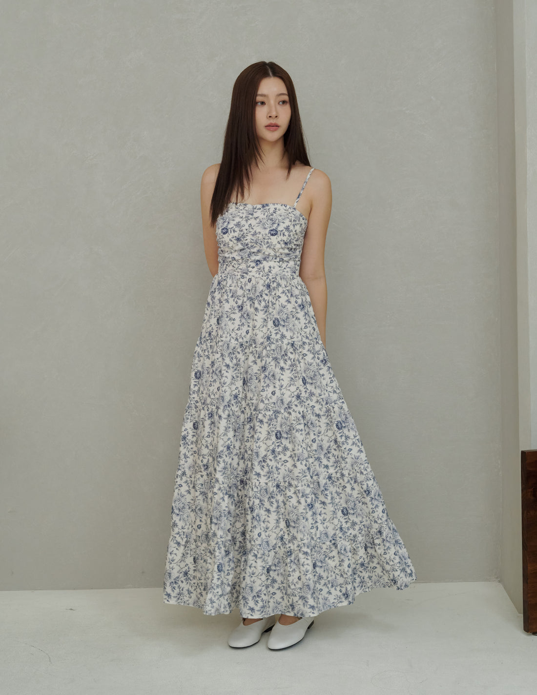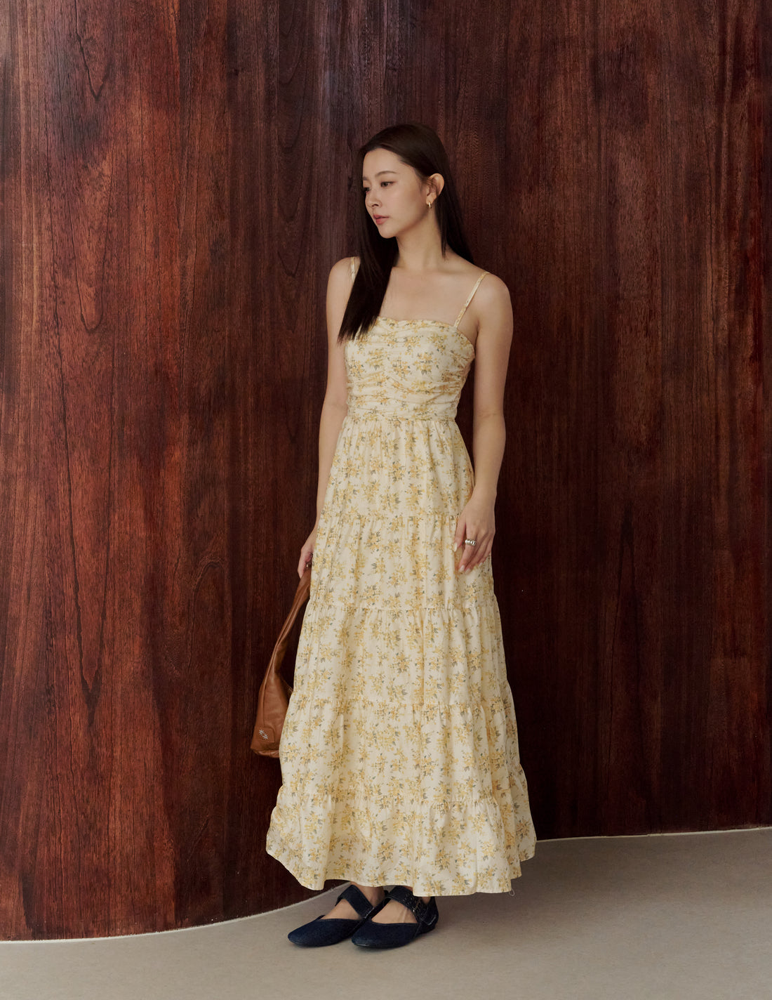 Lyndsey Padded Maxi Dress in Yellow Floral