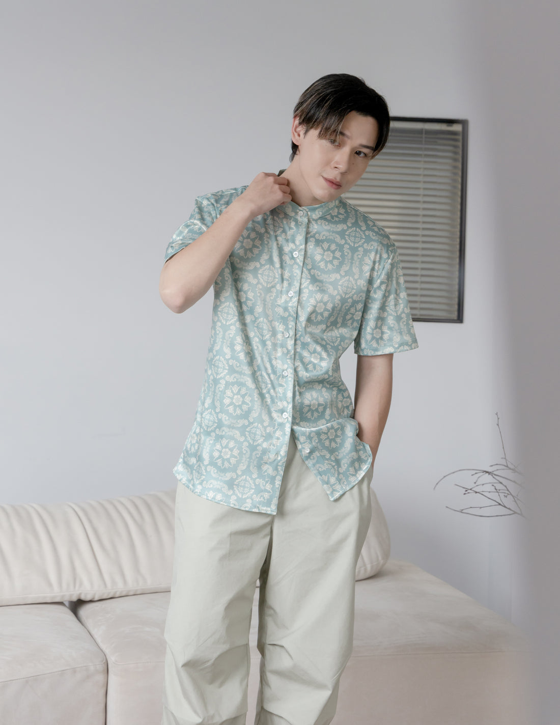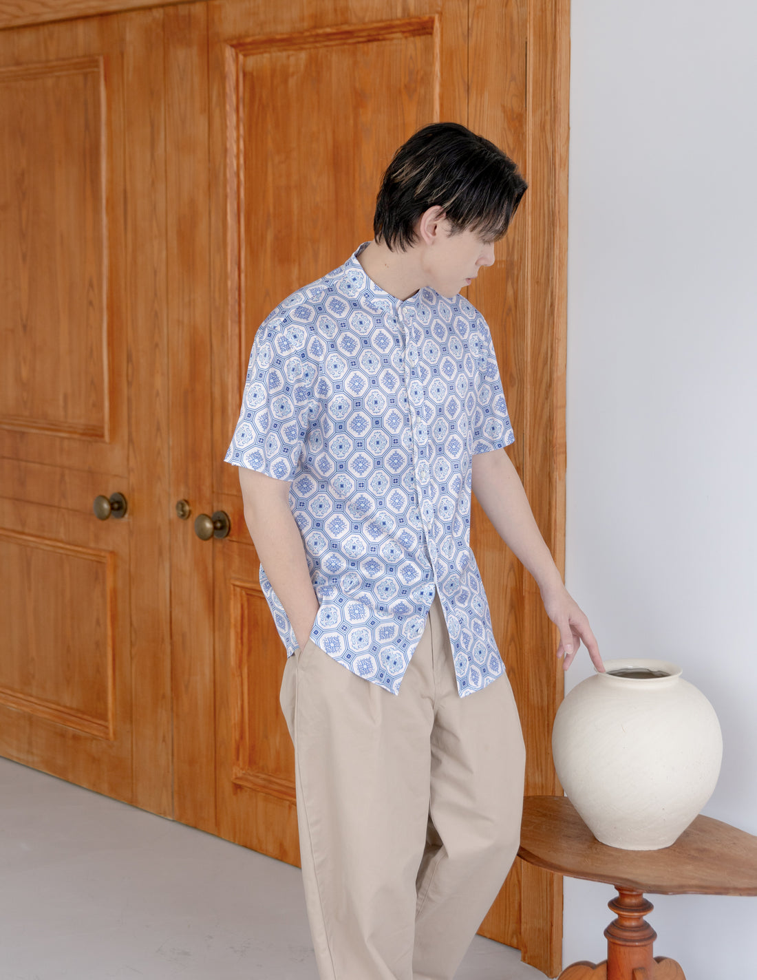 Information Button through Slightly stretchable Mandarin Collar Also available in White and Blue Composition 100% Polyester Wearing Model is...