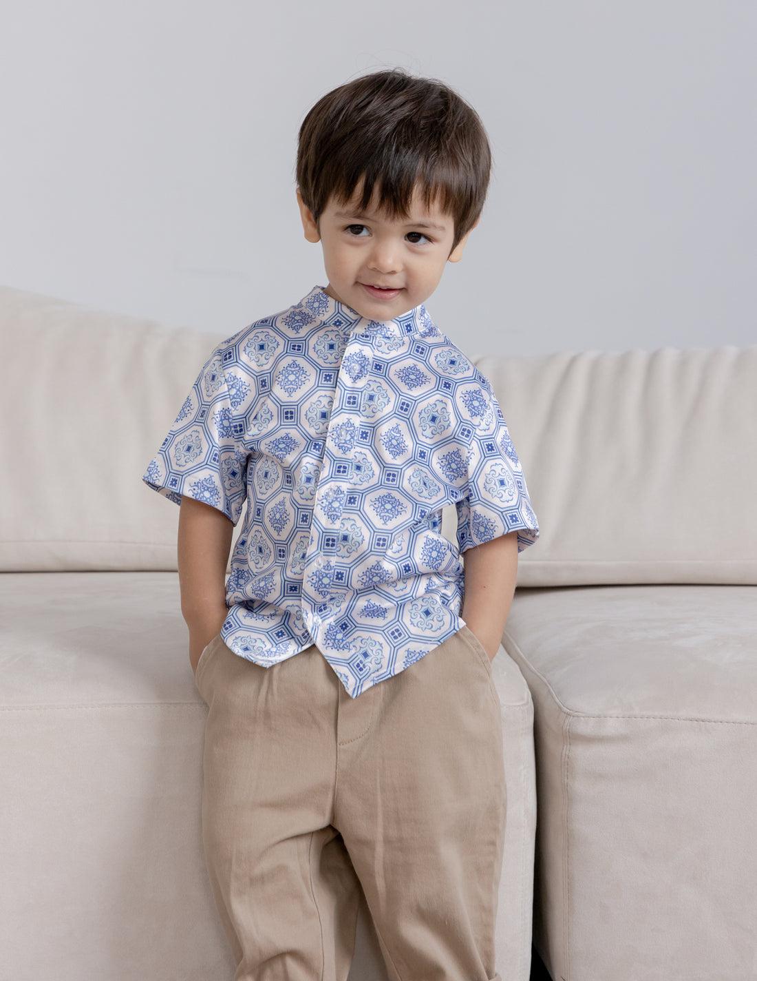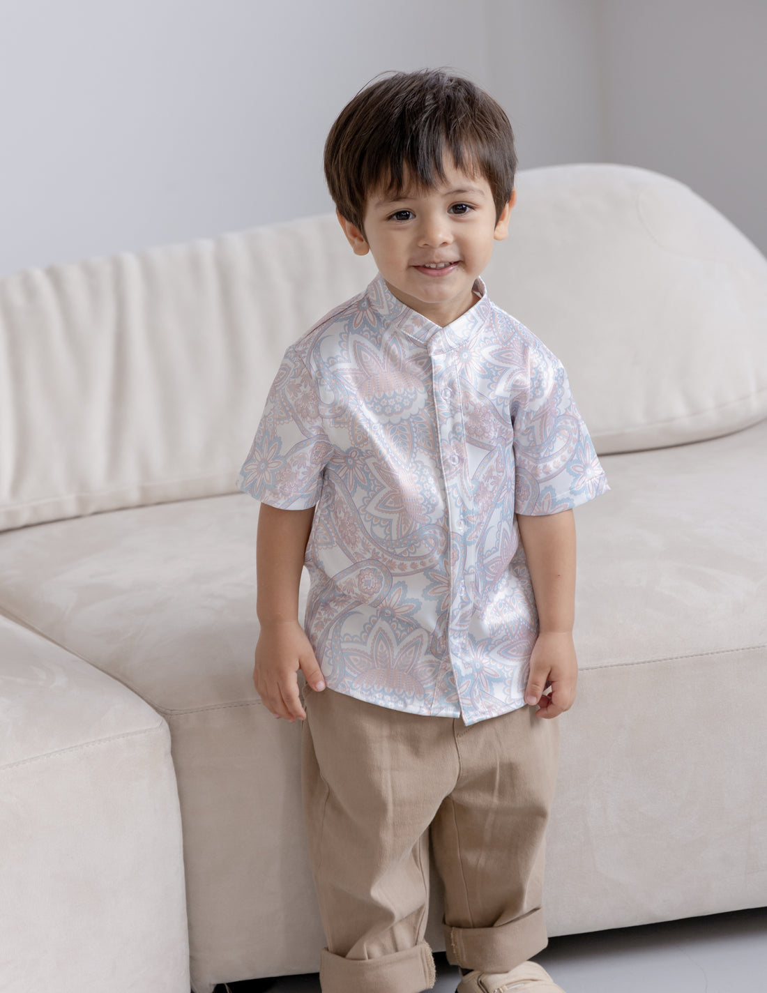 Information Button through Slightly stretchable Mandarin Collar Also available in Green and Blue Composition 100% Polyester Wearing Model is...