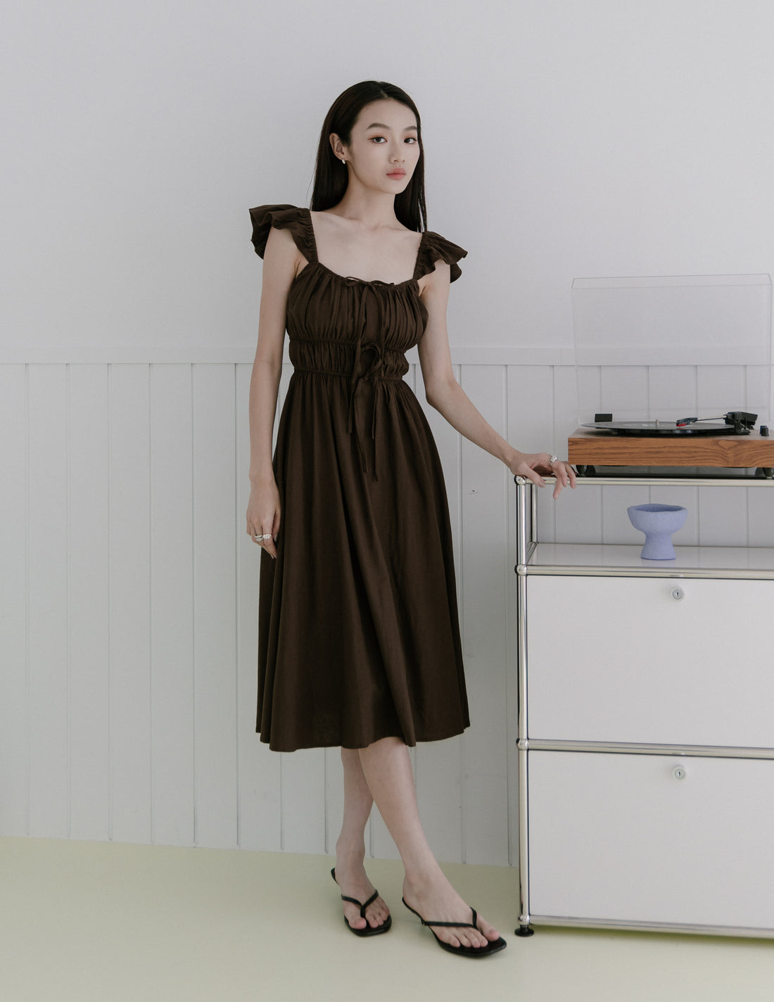 Sylvie Tie Front Linen Midi Dress in Coffee