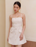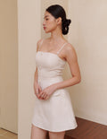 Ella Tweed Padded Mini Dress in Beige
