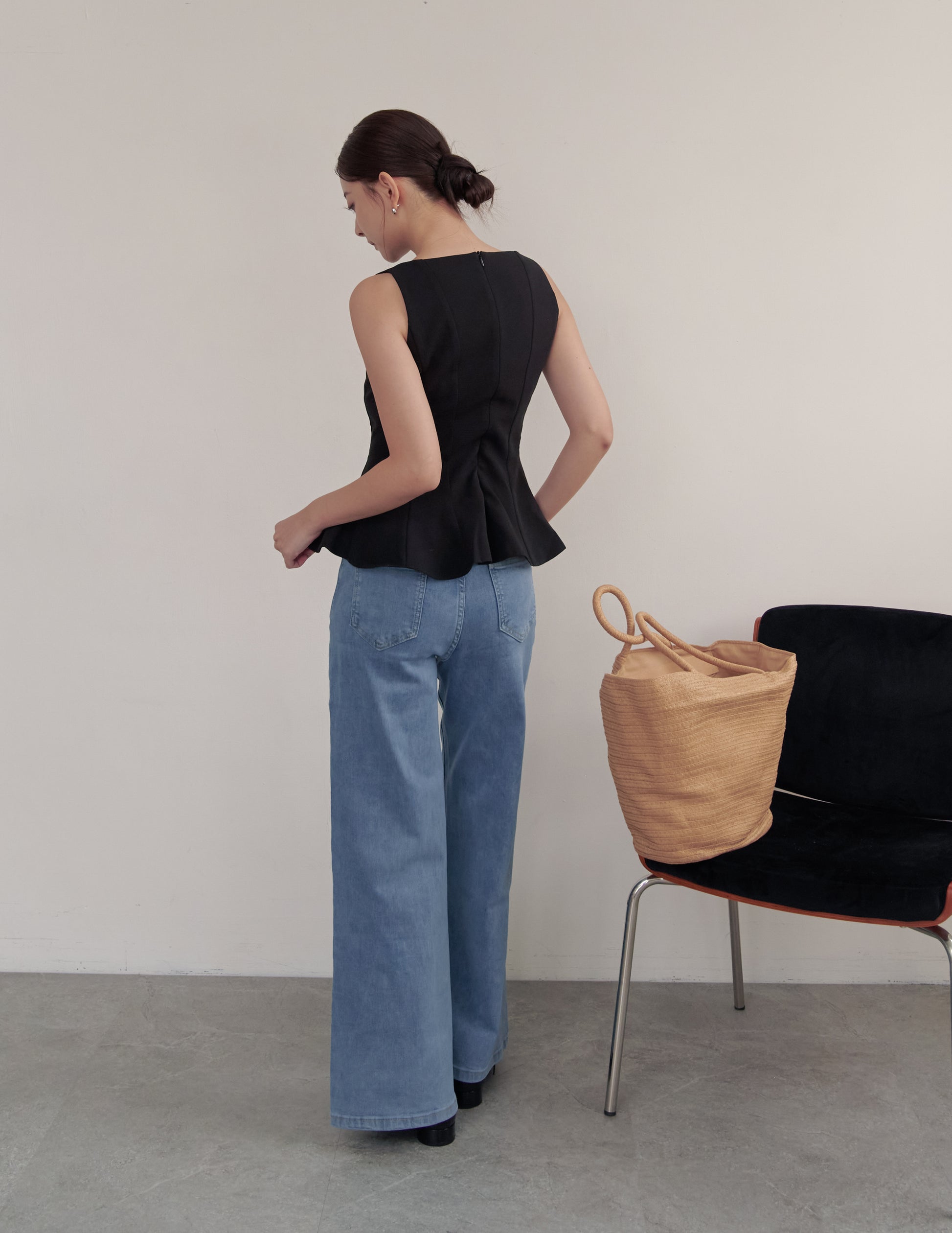 Gemma Stretchy Wide Straight Jeans in Mid Wash