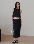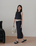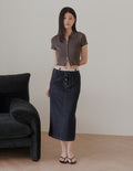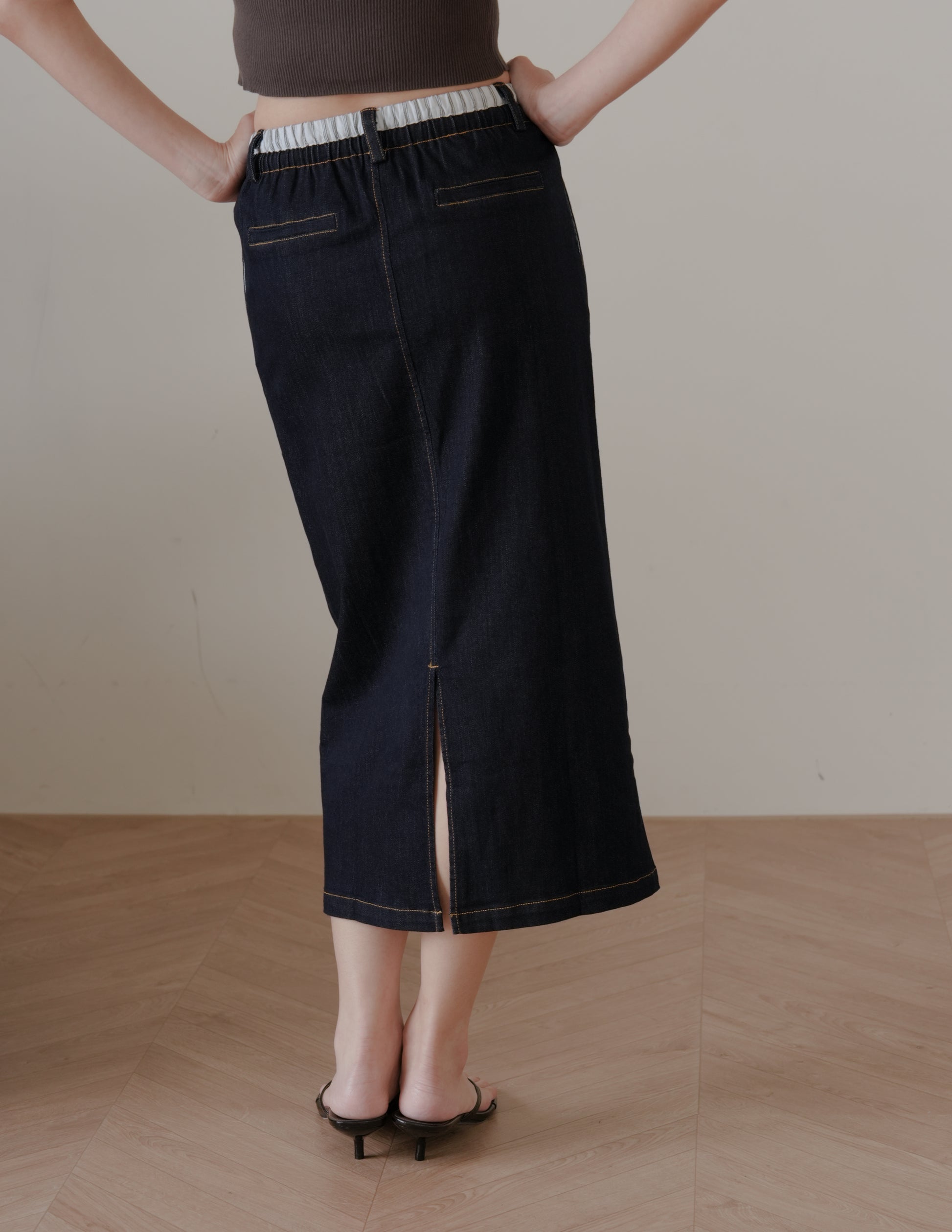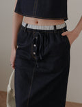 Ivy Contrast Waist Denim Skirt in Dark Wash
