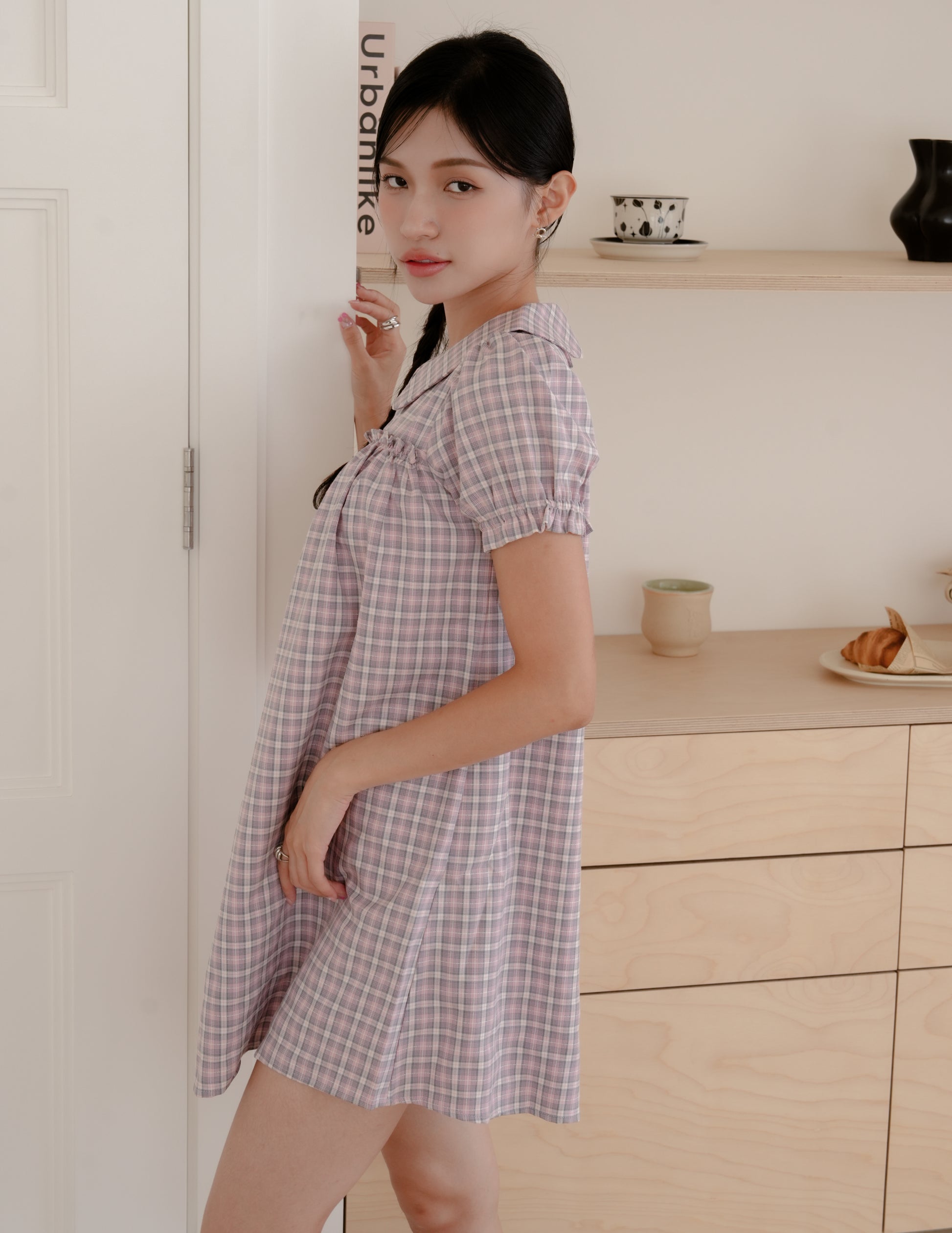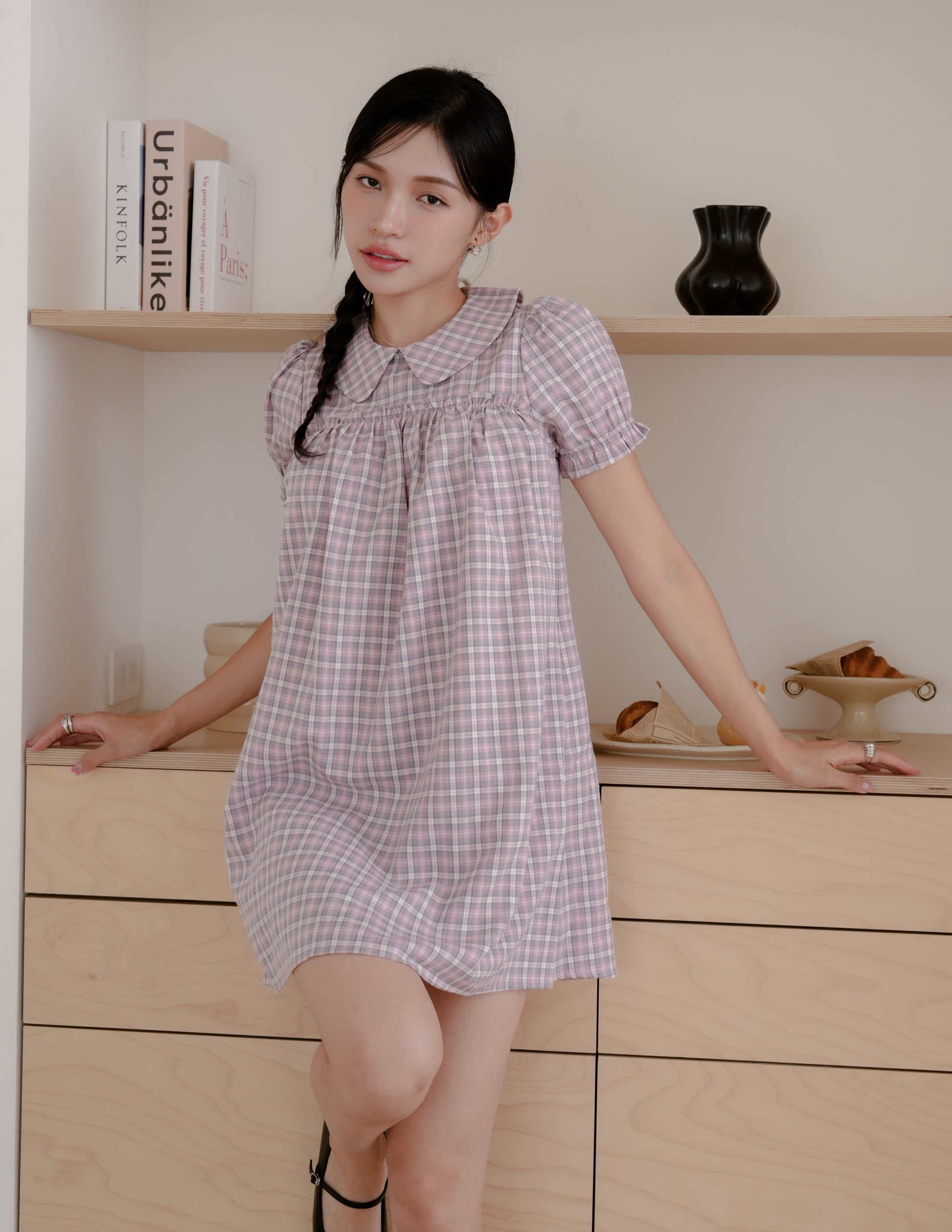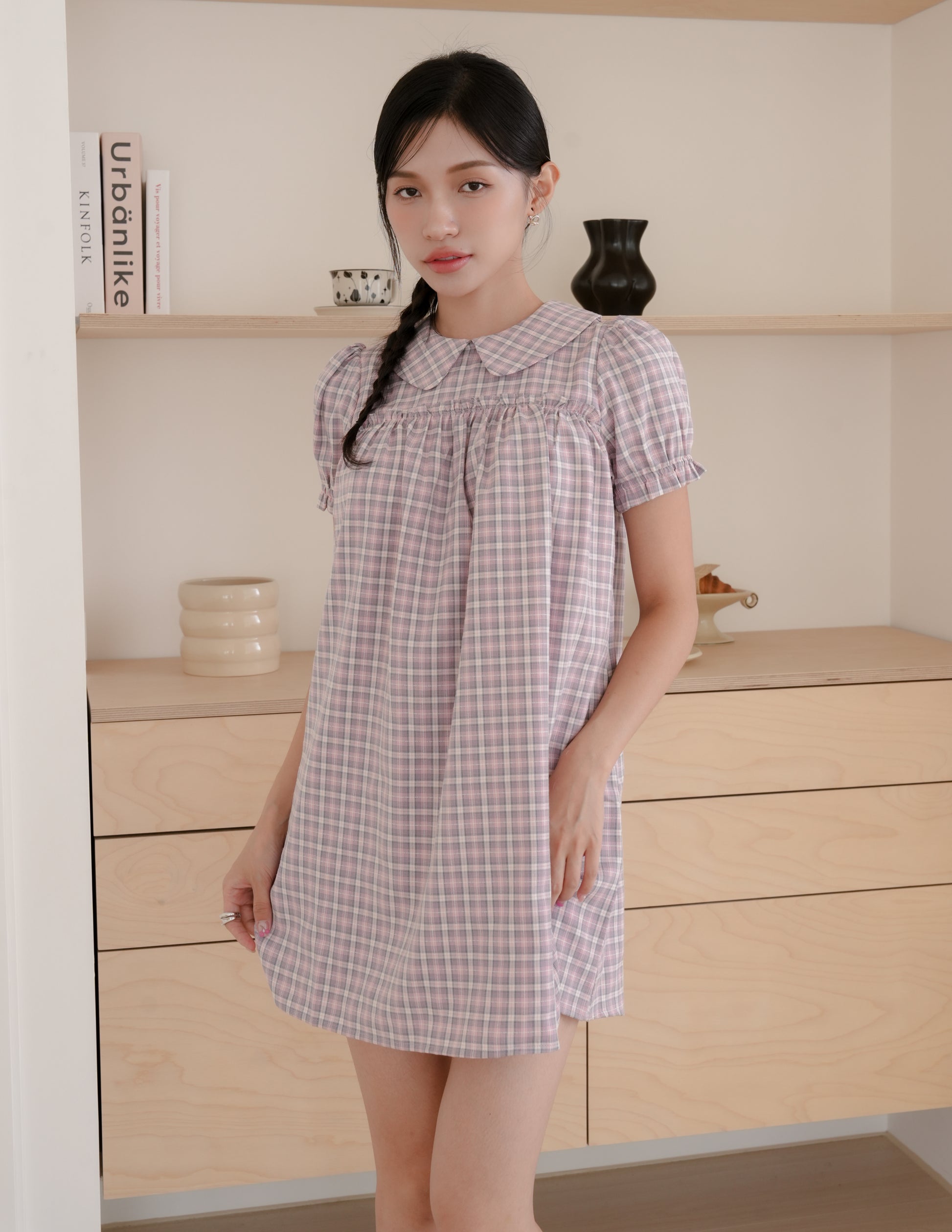 Izzy Plaid Babydoll Dress in Pink