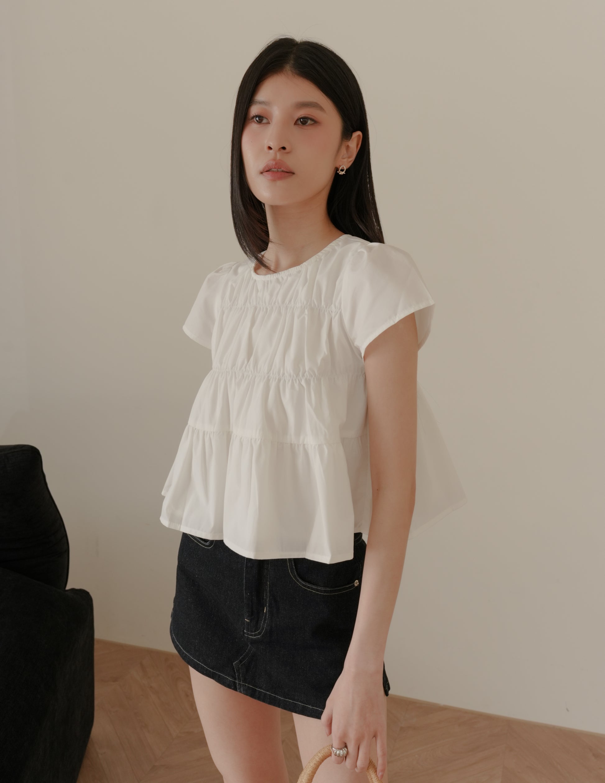 Kimberly Tiered Babydoll Top in White