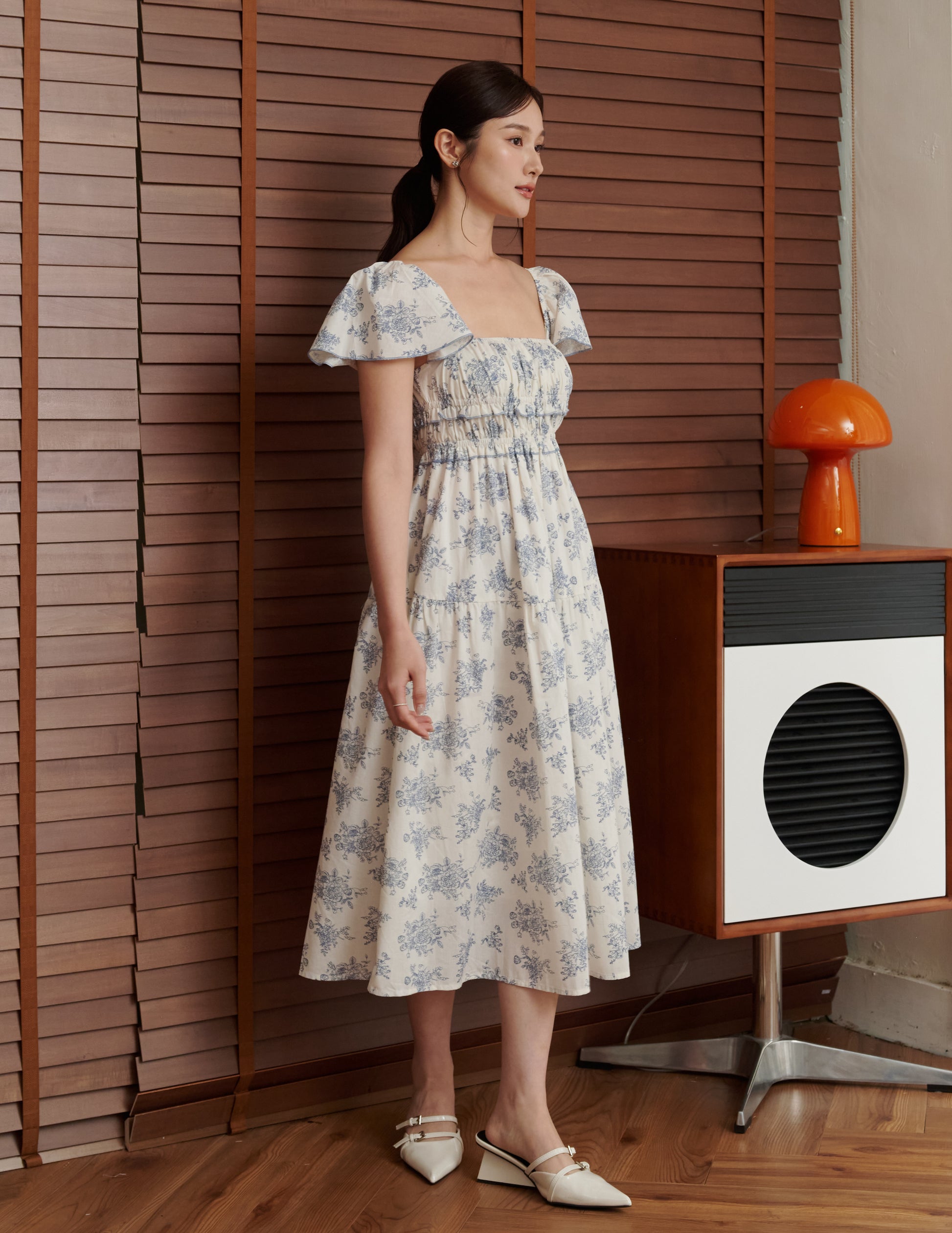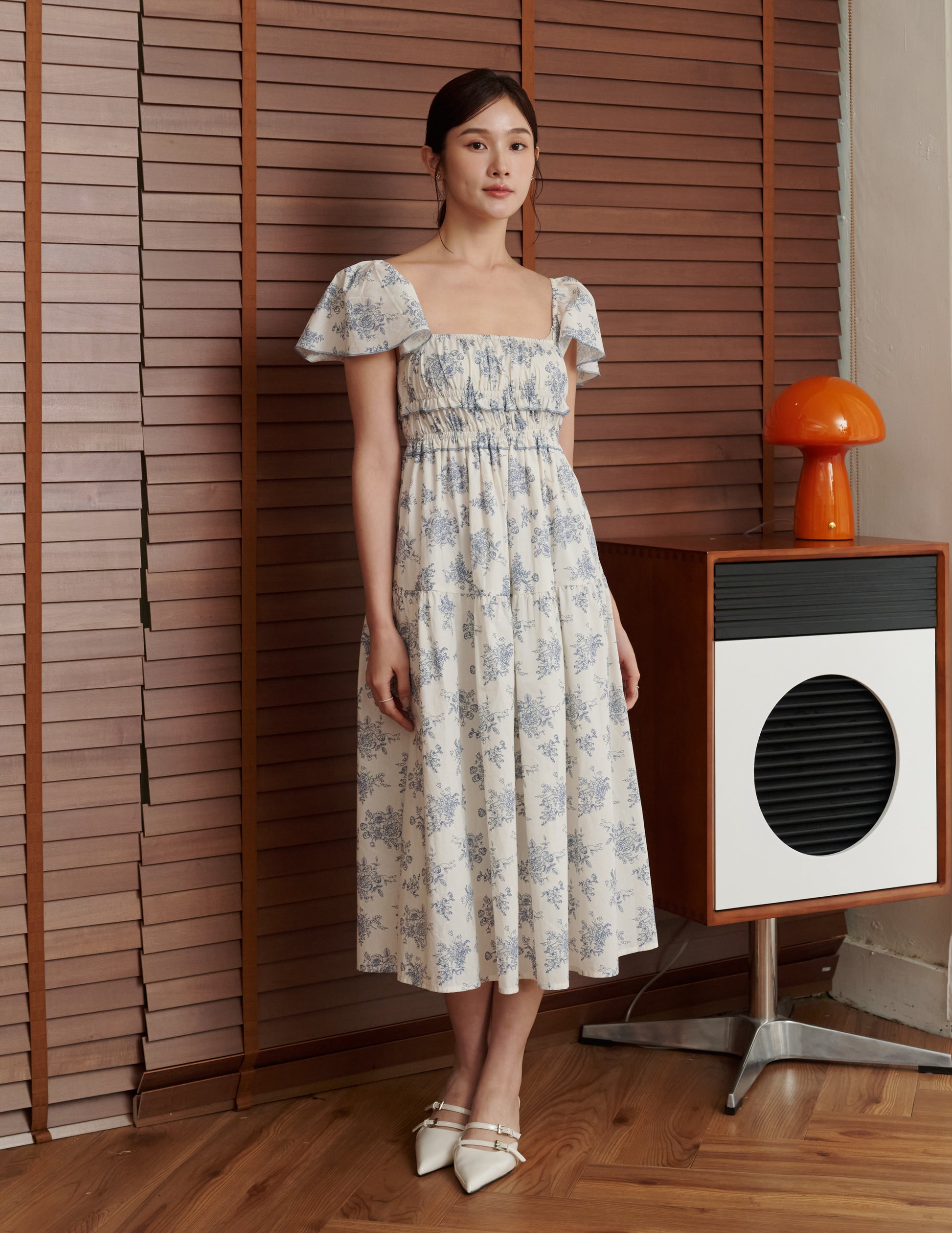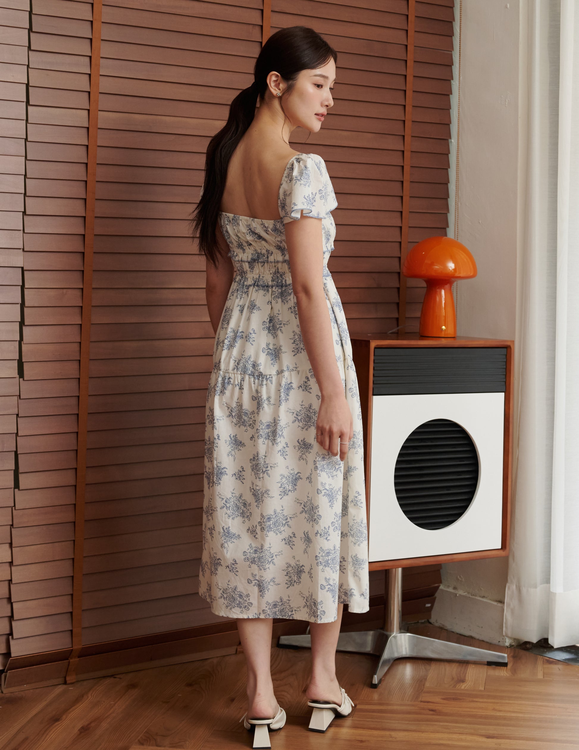 Lila Floral Midi Dress in Blue
