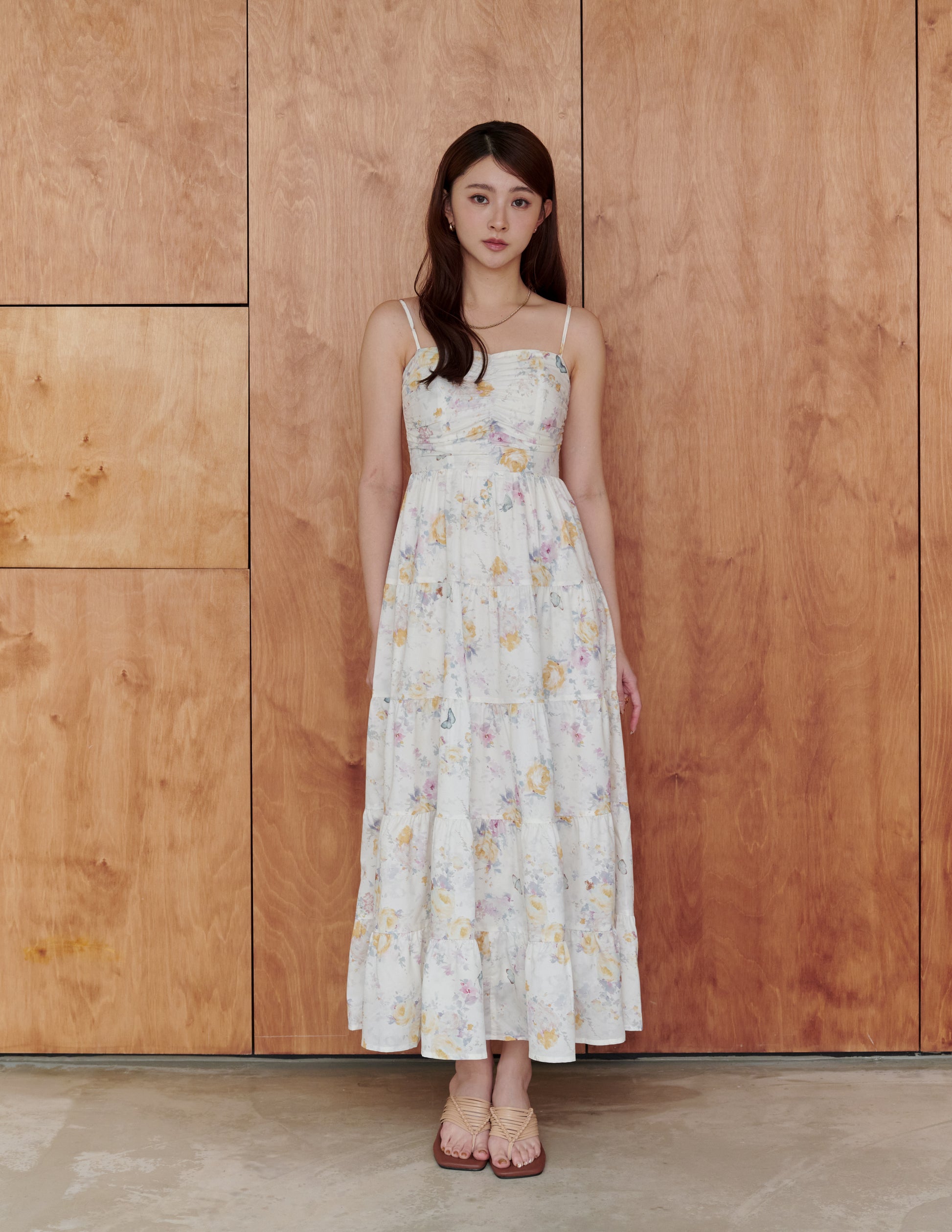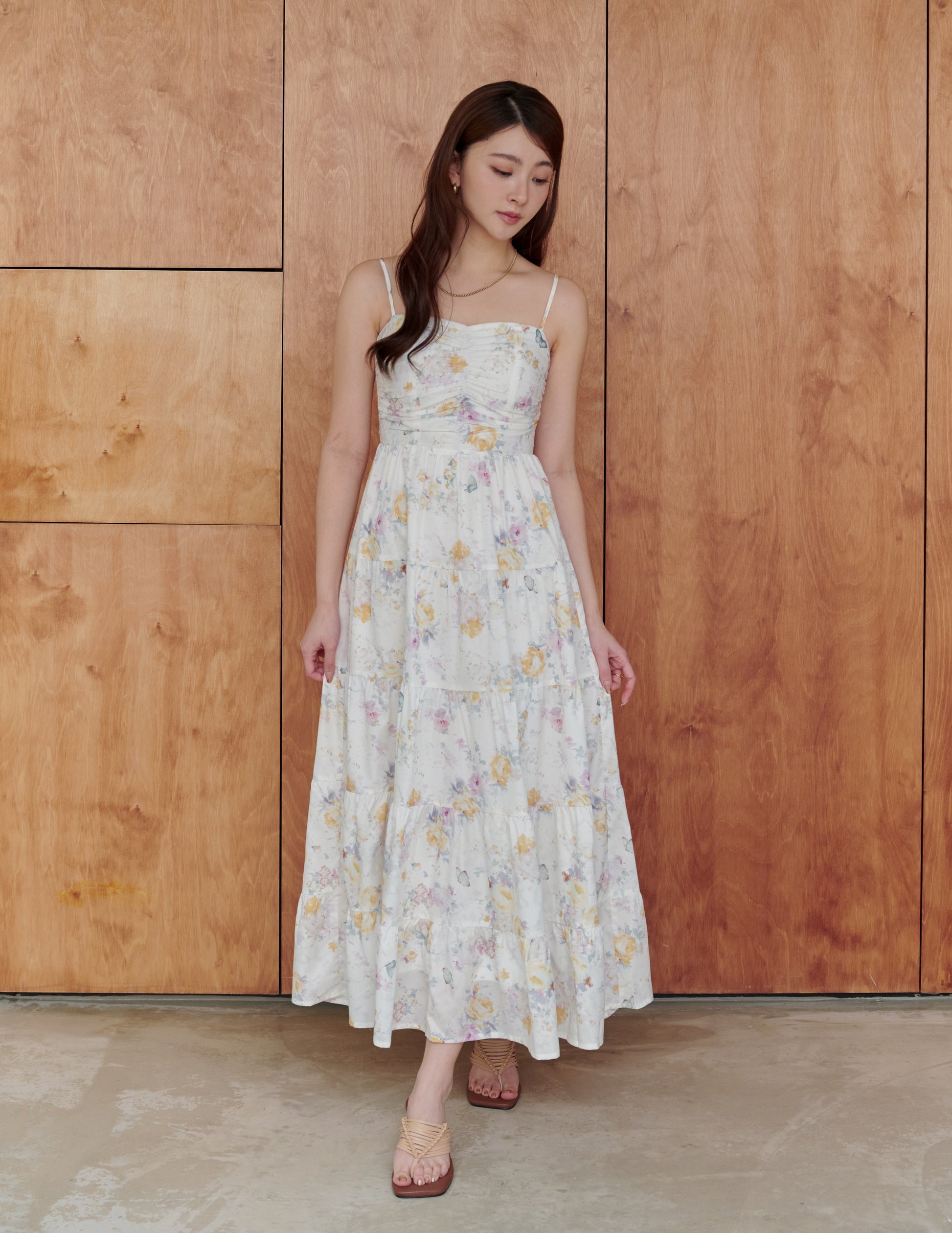 Lyndsey Padded Maxi Dress in Flutter Bloom