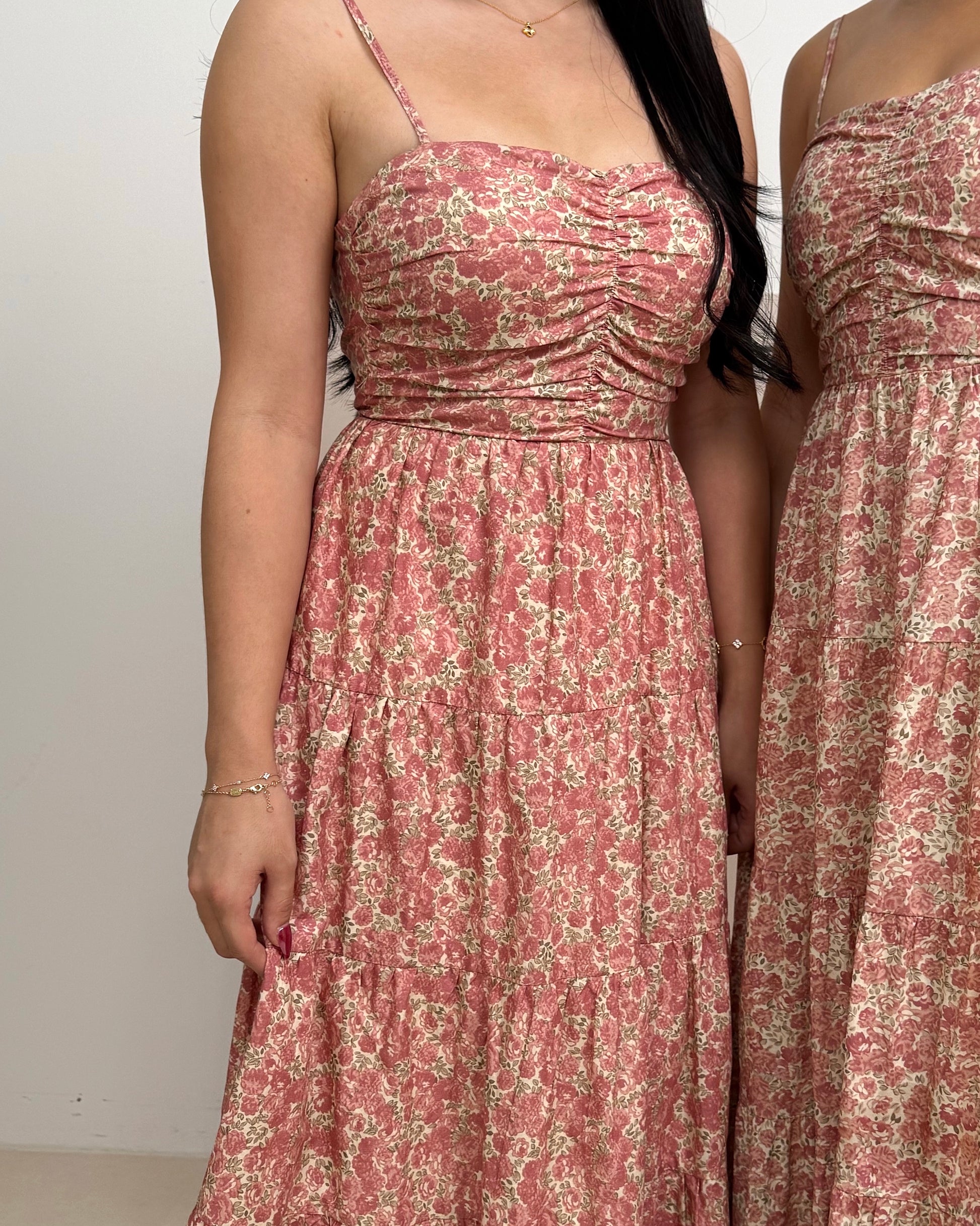 Lyndsey Padded Maxi Dress in Vintage Floral