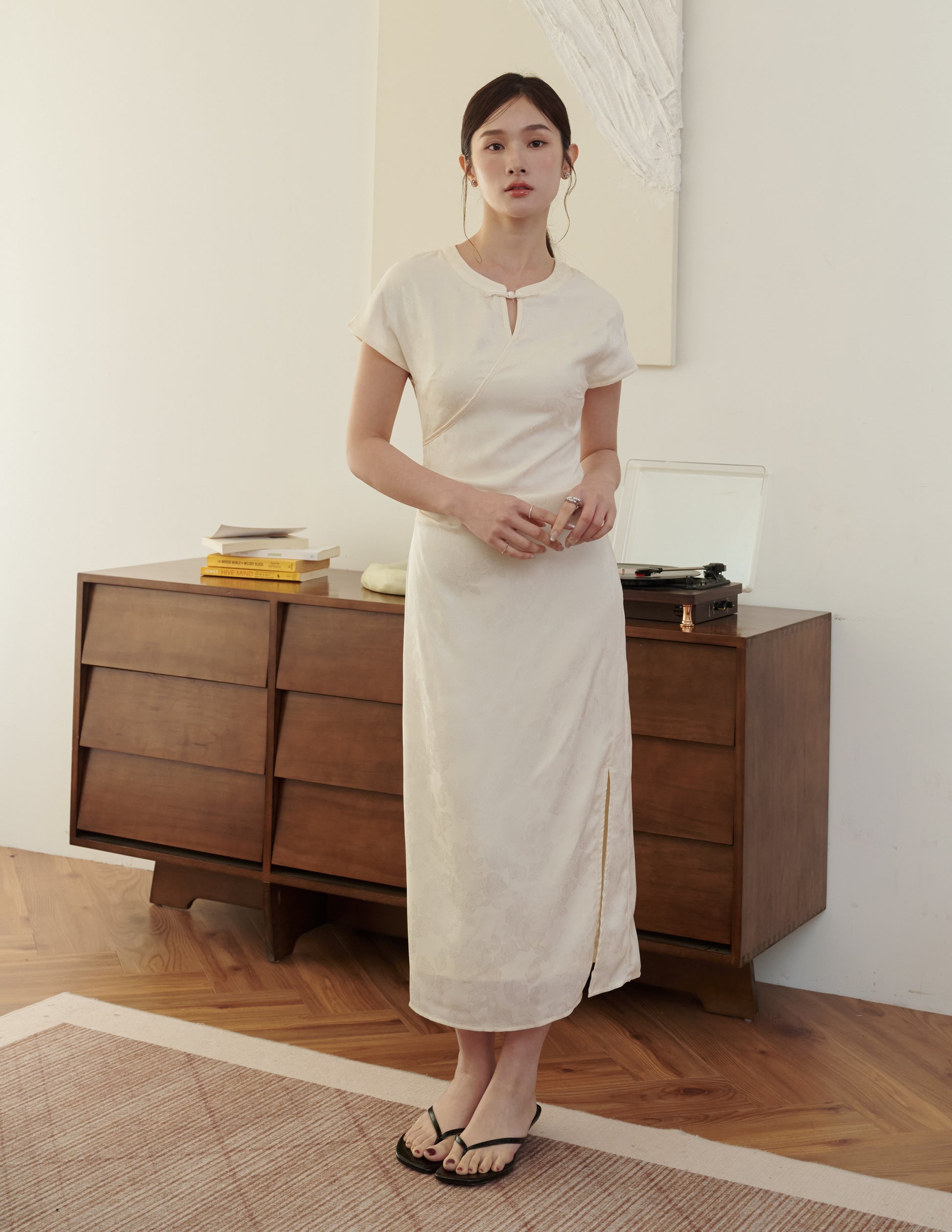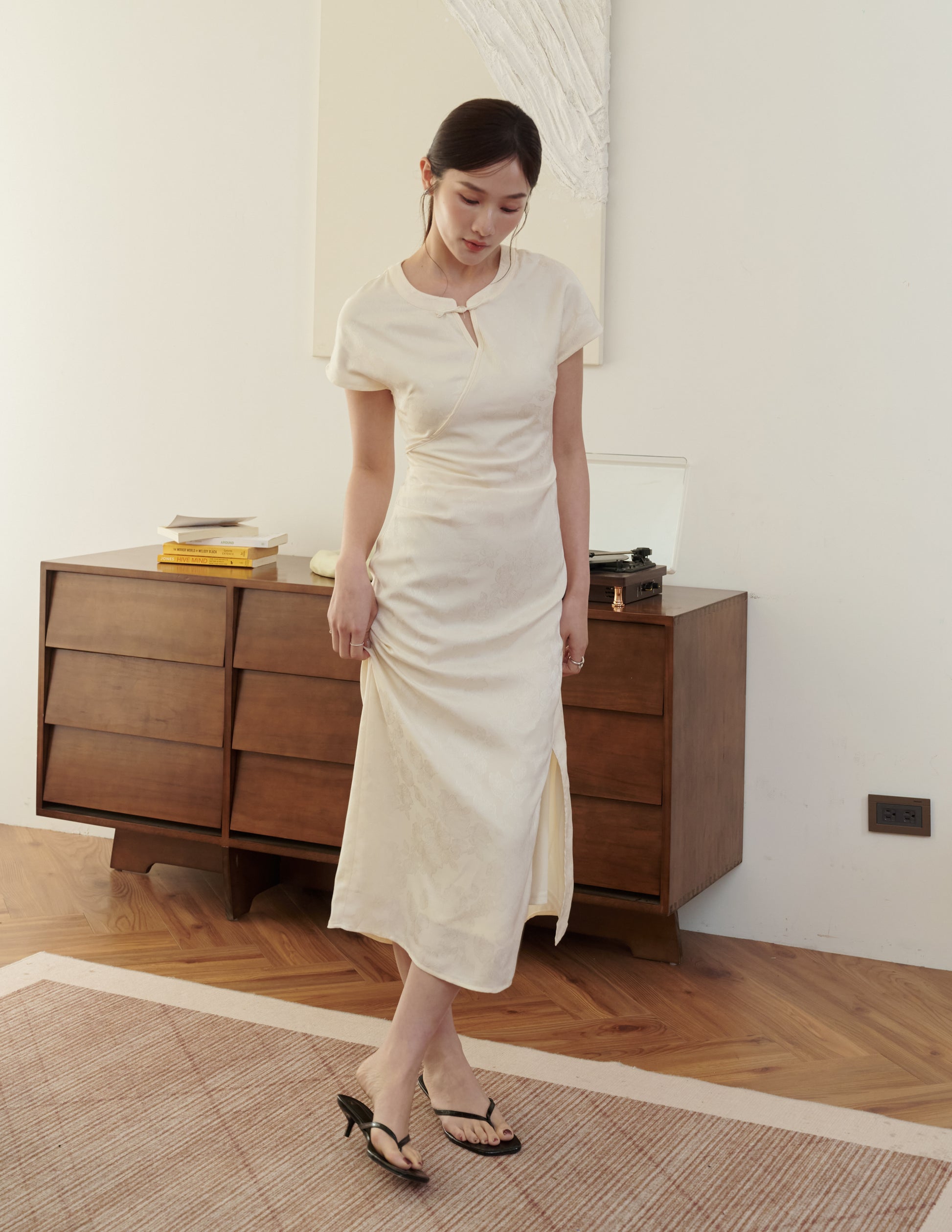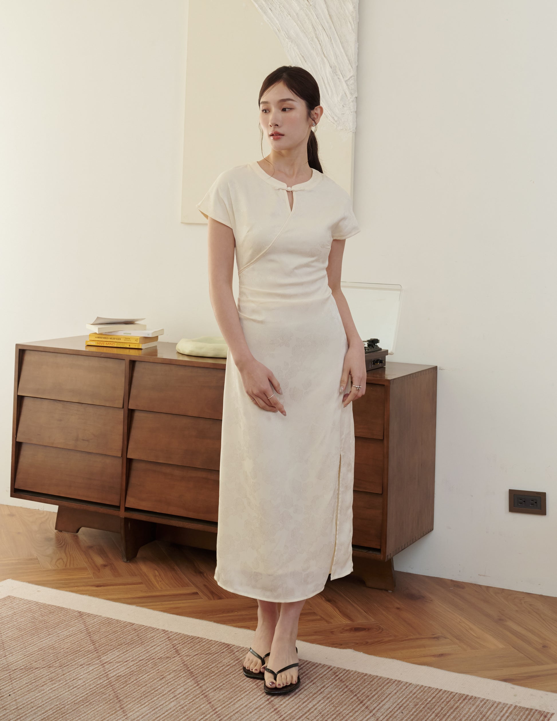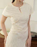 Mila Jacquard Cheongsam Midi Dress in Ivory