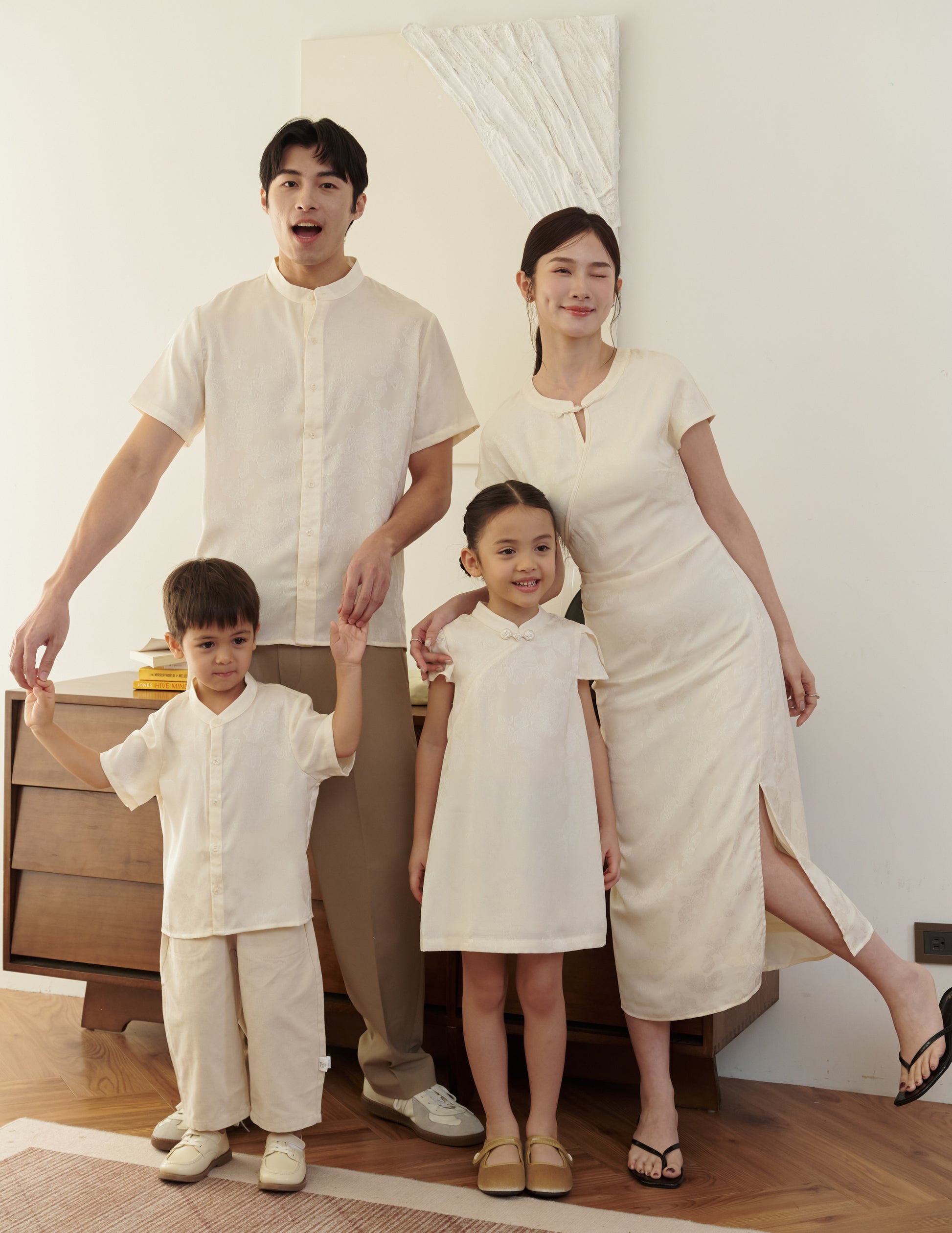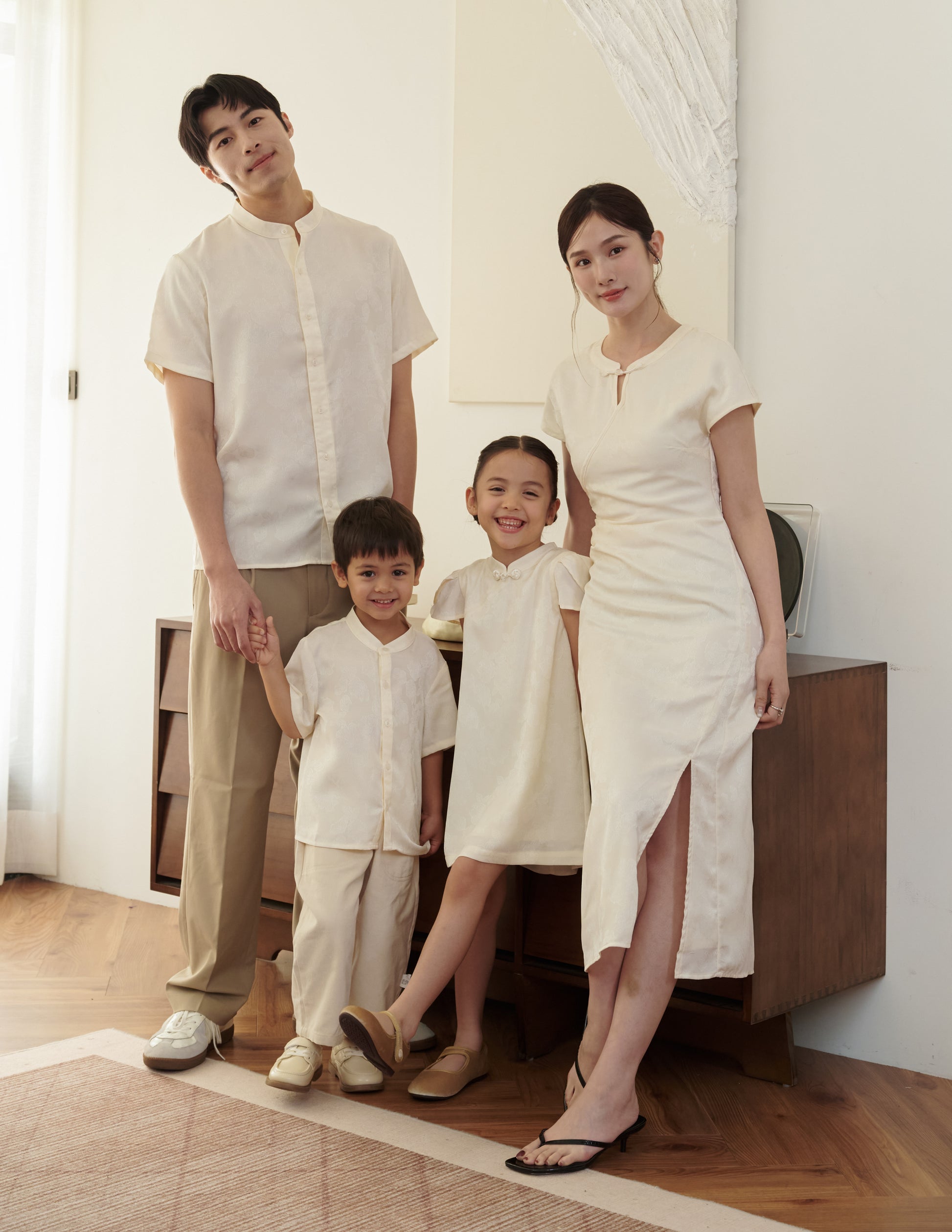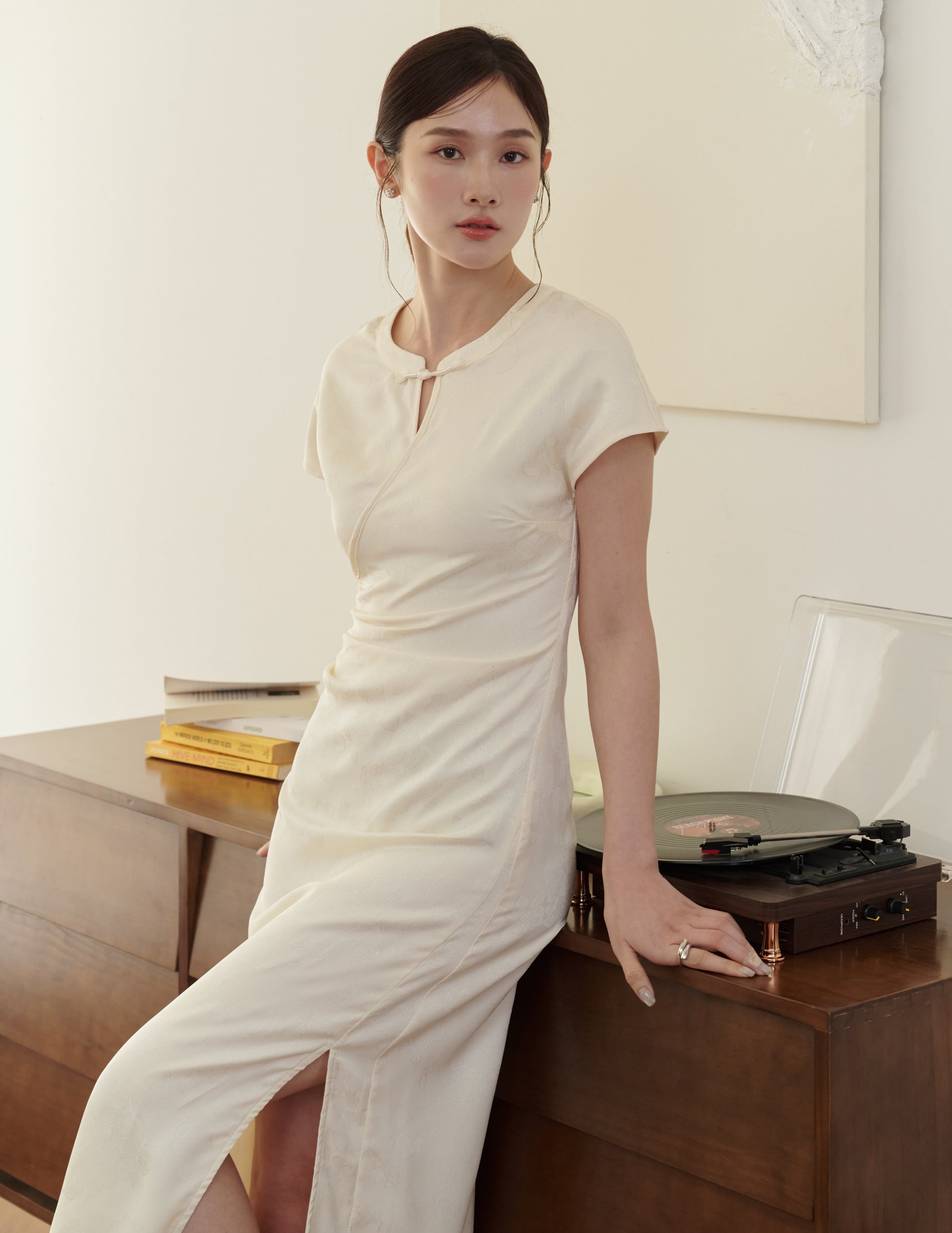 Mila Jacquard Cheongsam Midi Dress in Ivory