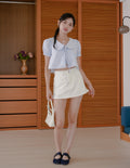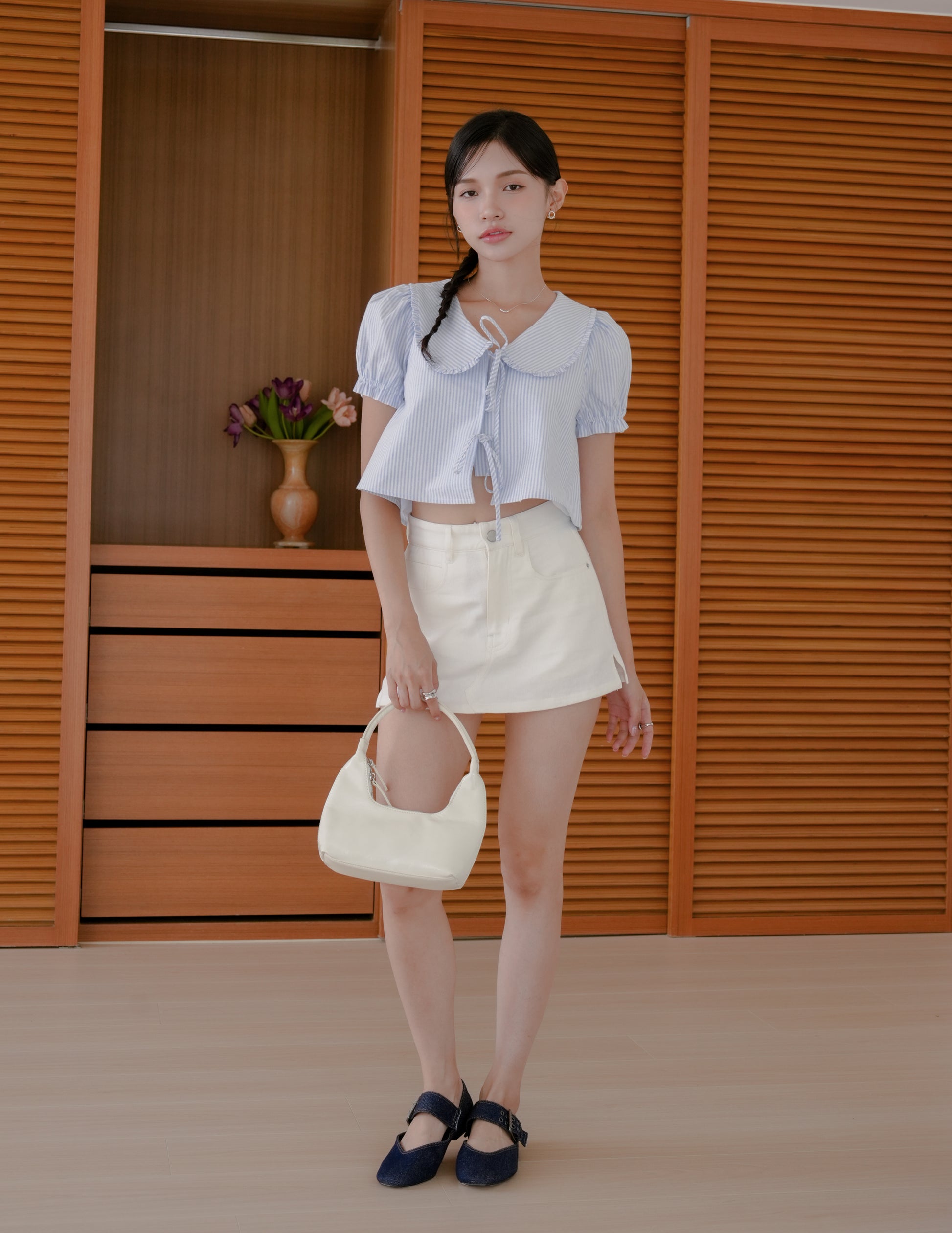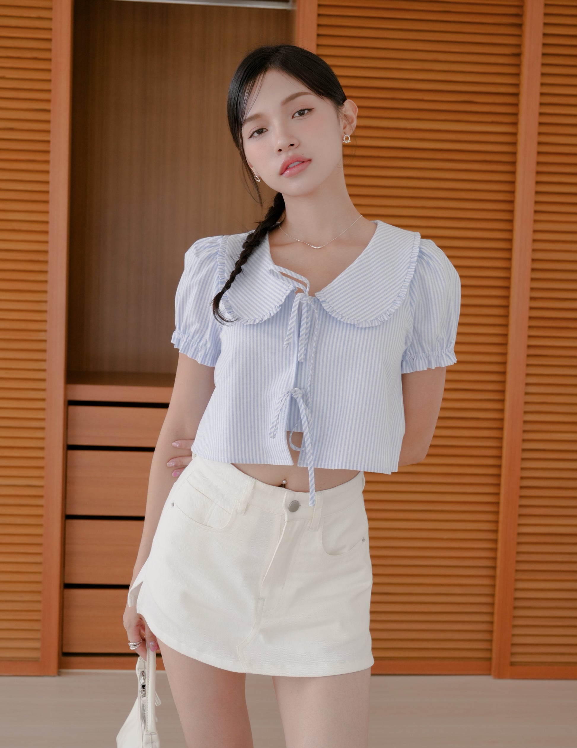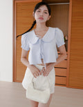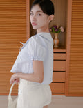 Poppy Ribbon Tie Peterpan Top in Blue Stripe