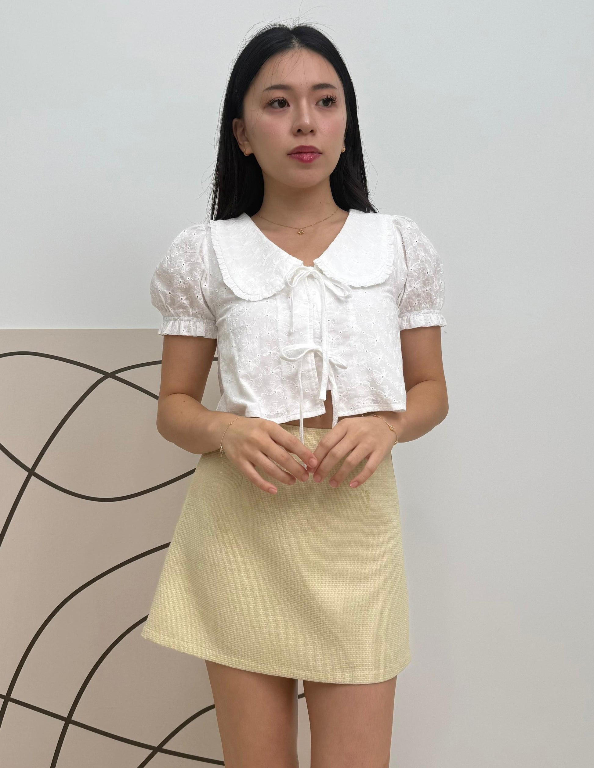 Poppy Ribbon Tie Peterpan Top in Bow Eyelet