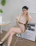 Model is 1.63m, (15.5" PTP, 12.0" Waist, 17.0" Hip), wearing size XS