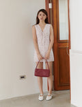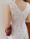 Rosette Padded Lace-Tie Romper Dress in Pink