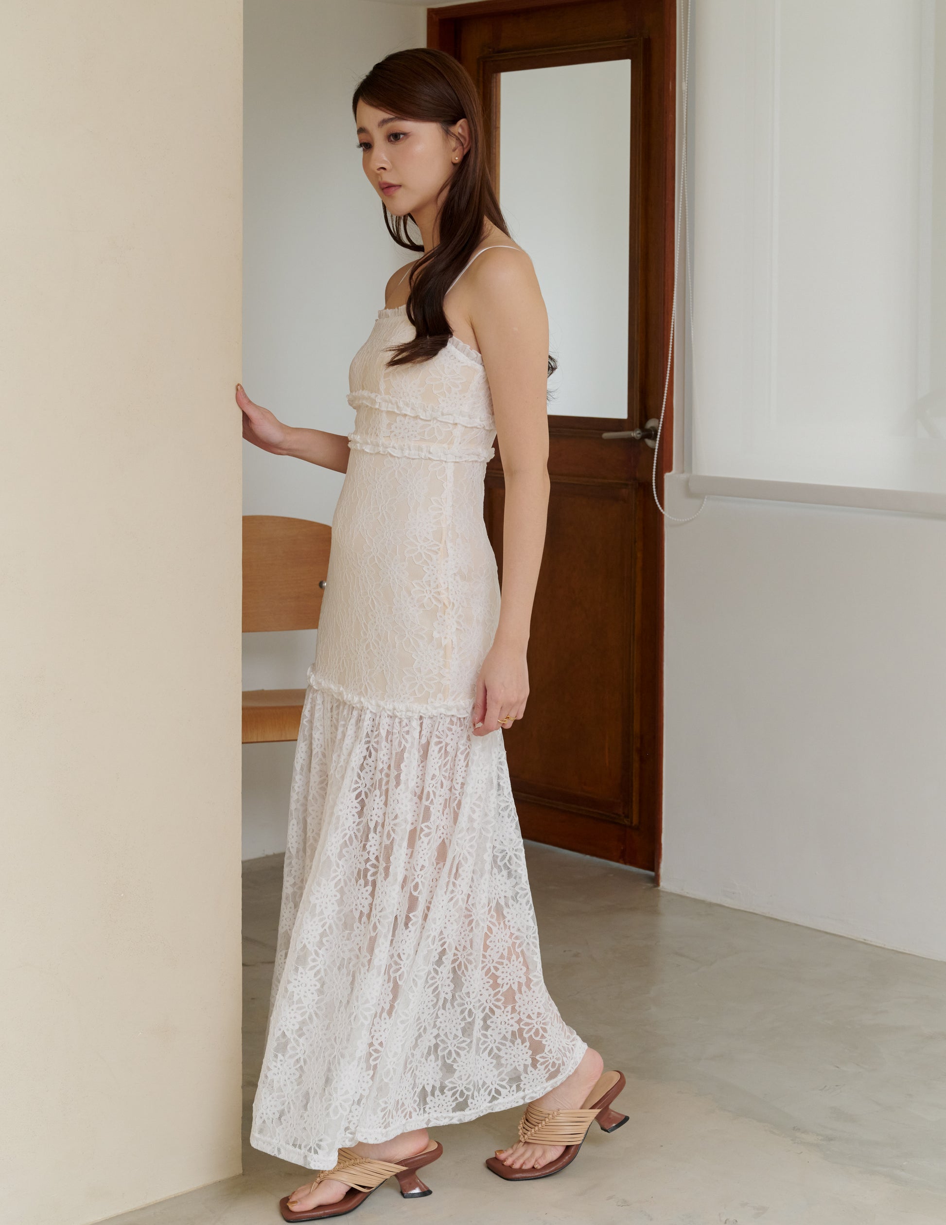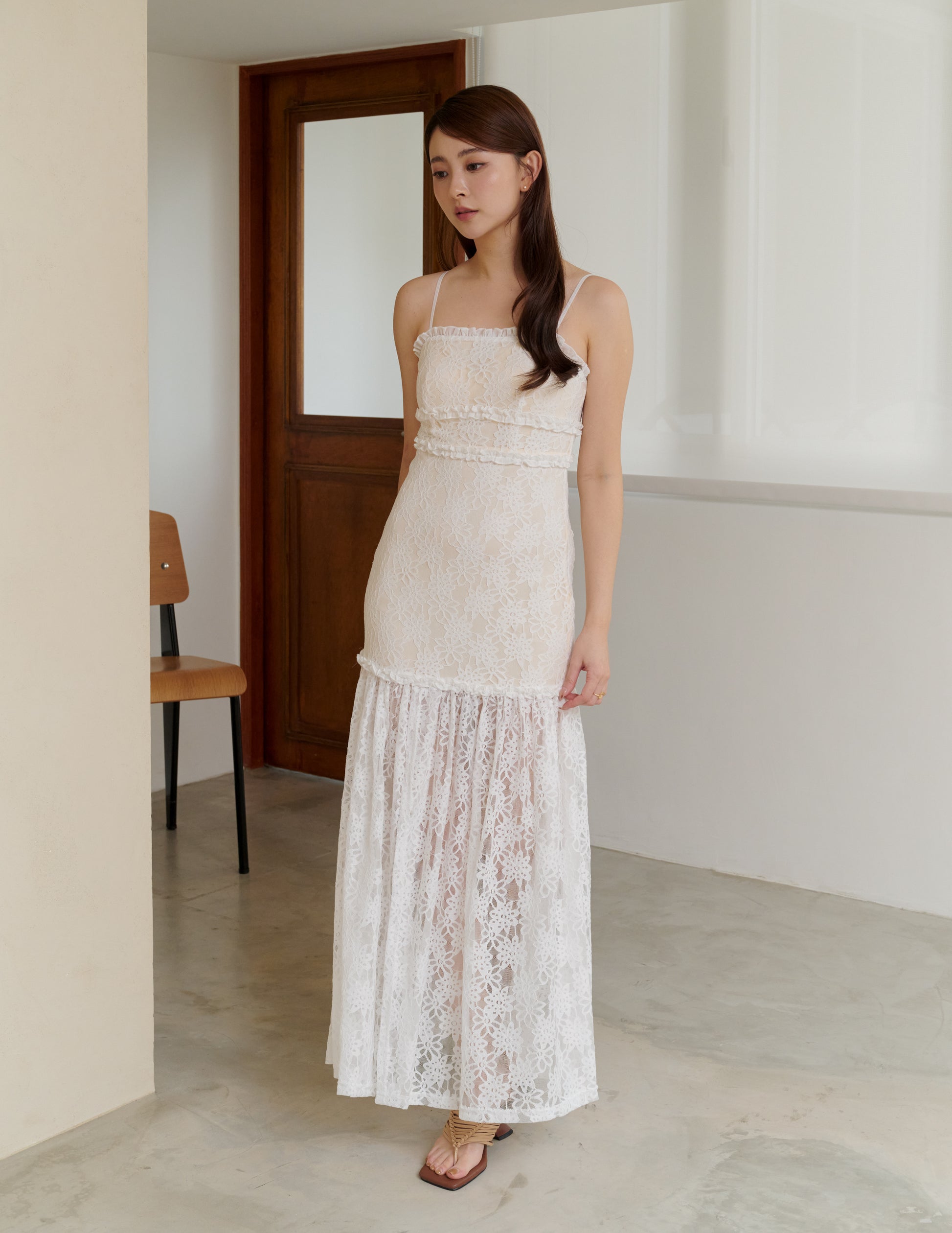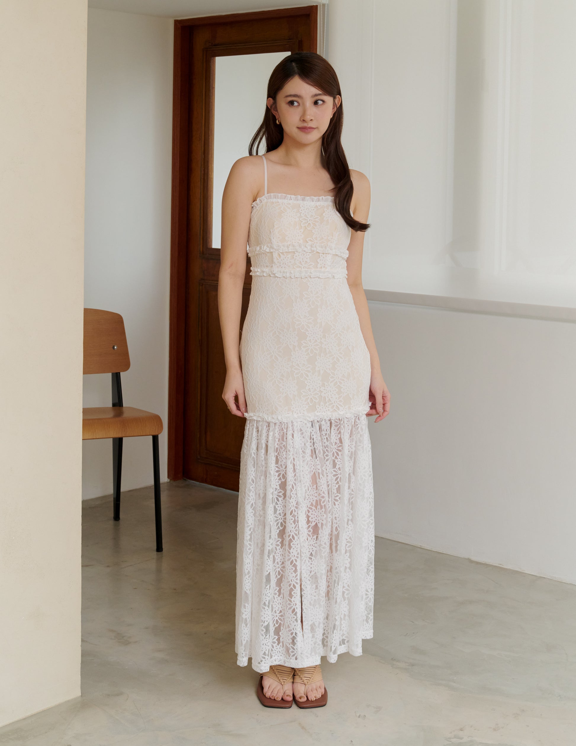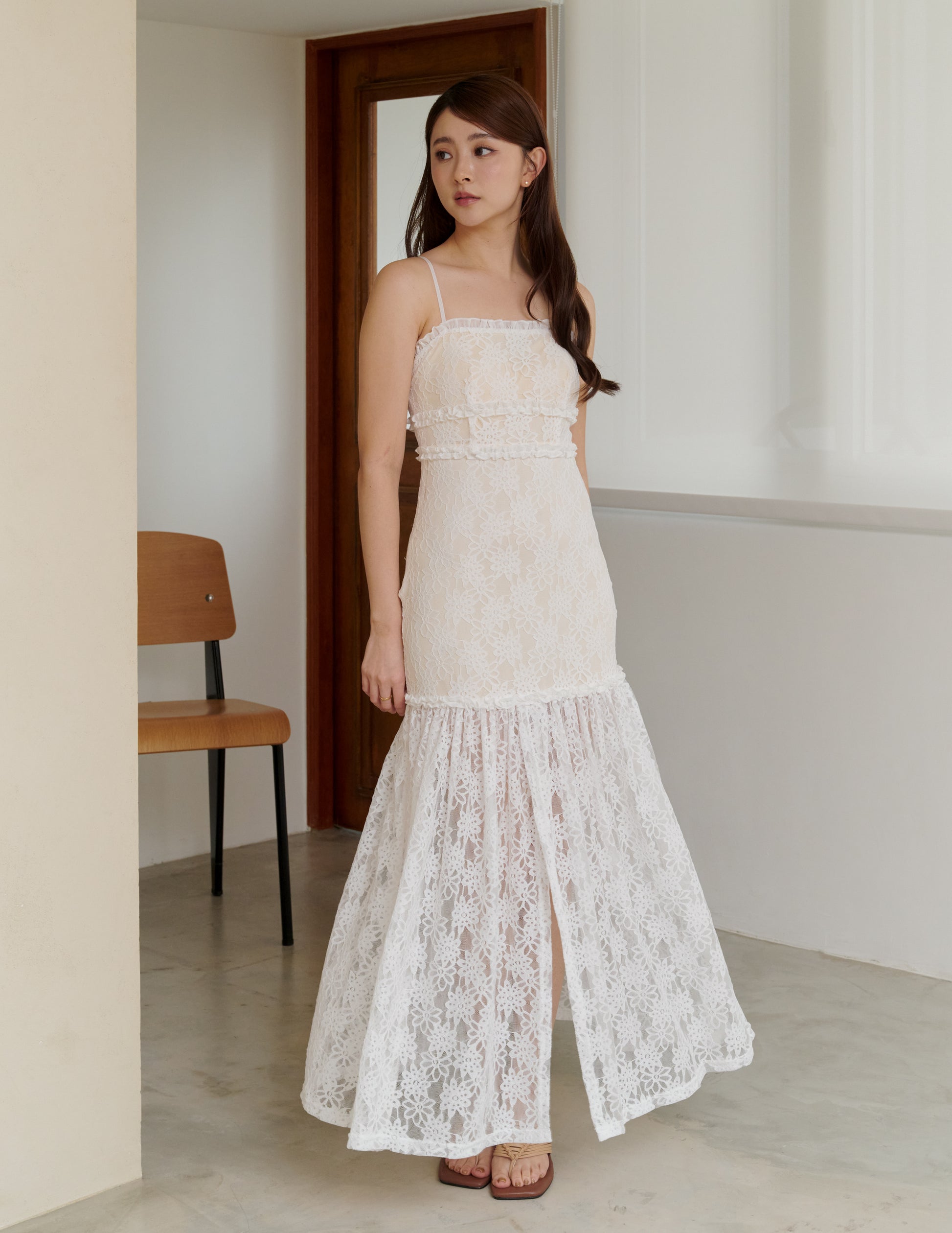 Sora Lace Padded Maxi Dress in Off White