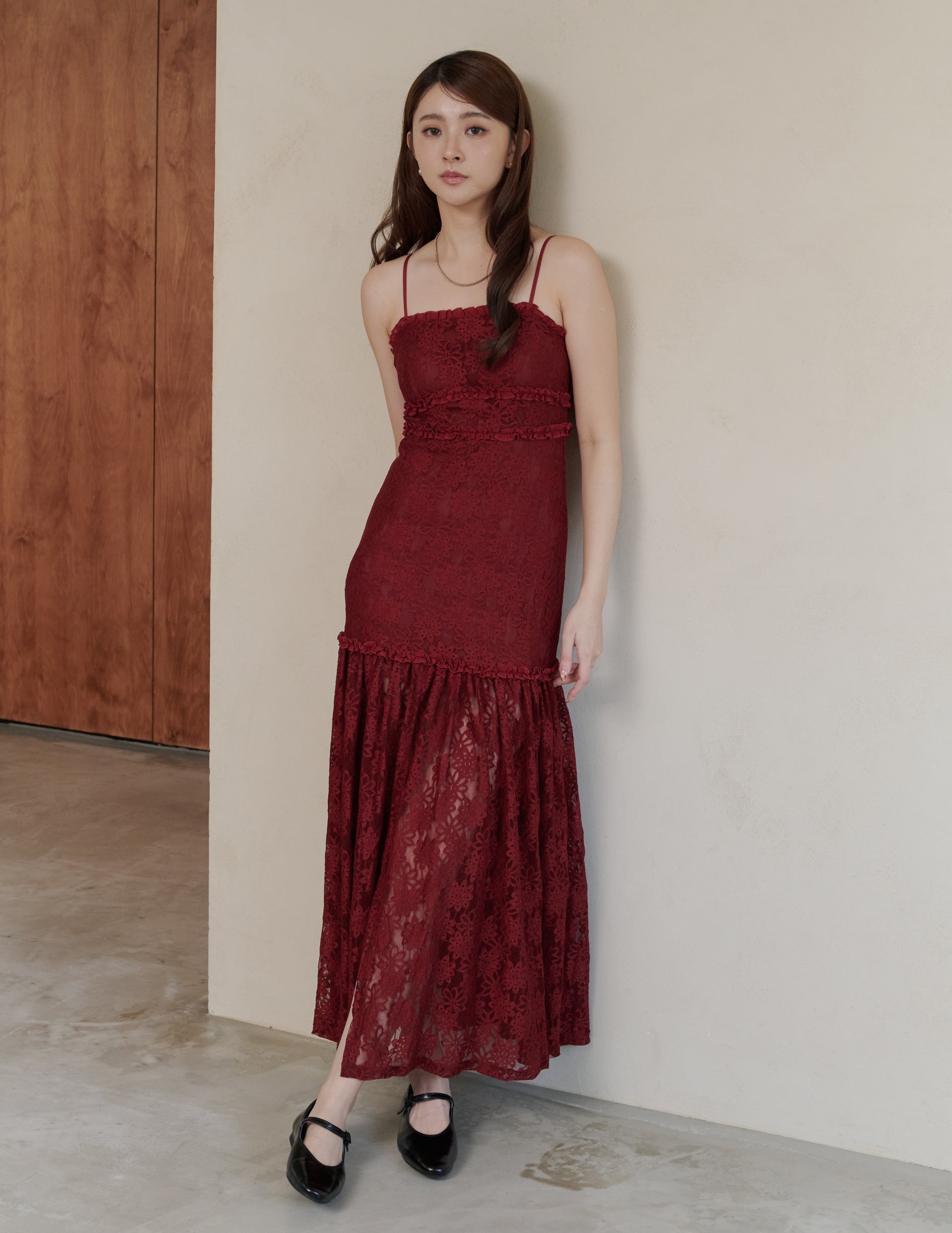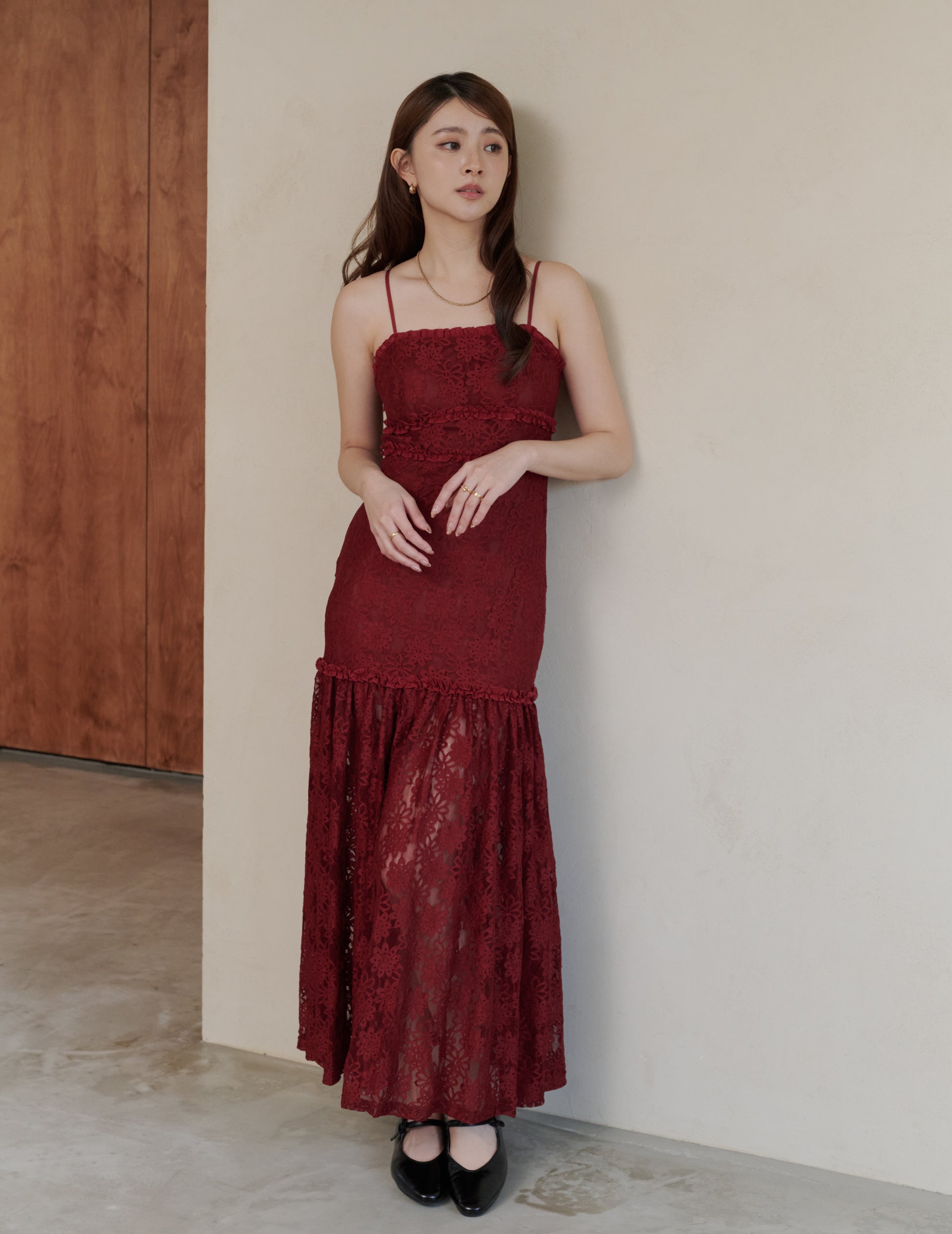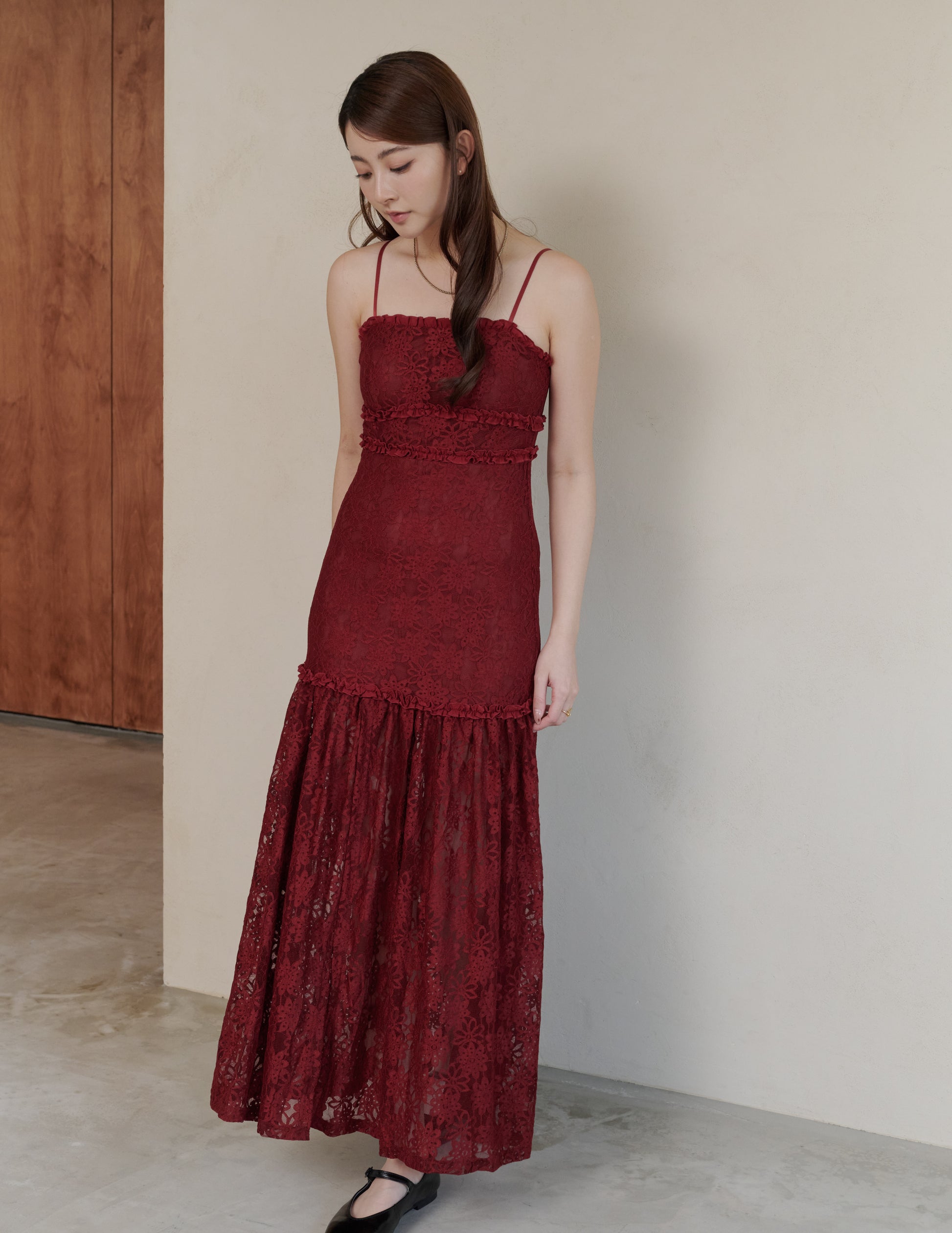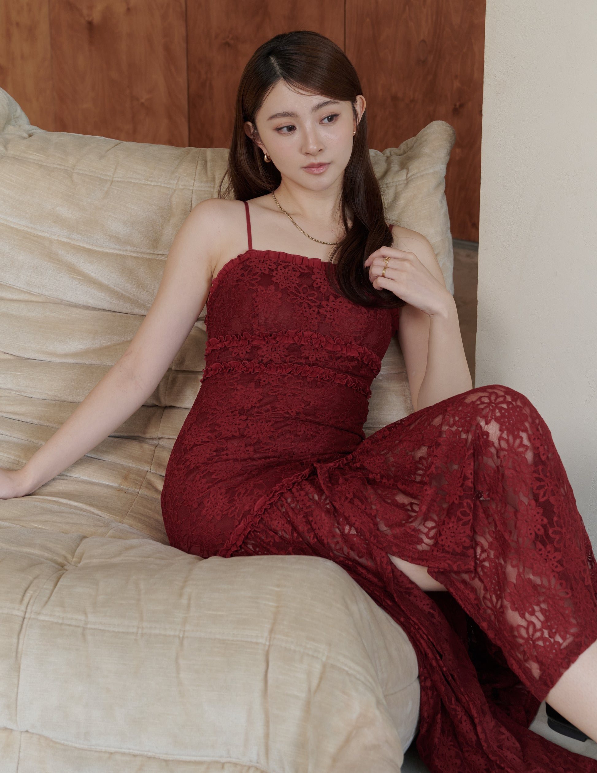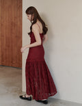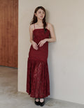 Sora Lace Padded Maxi Dress in Red