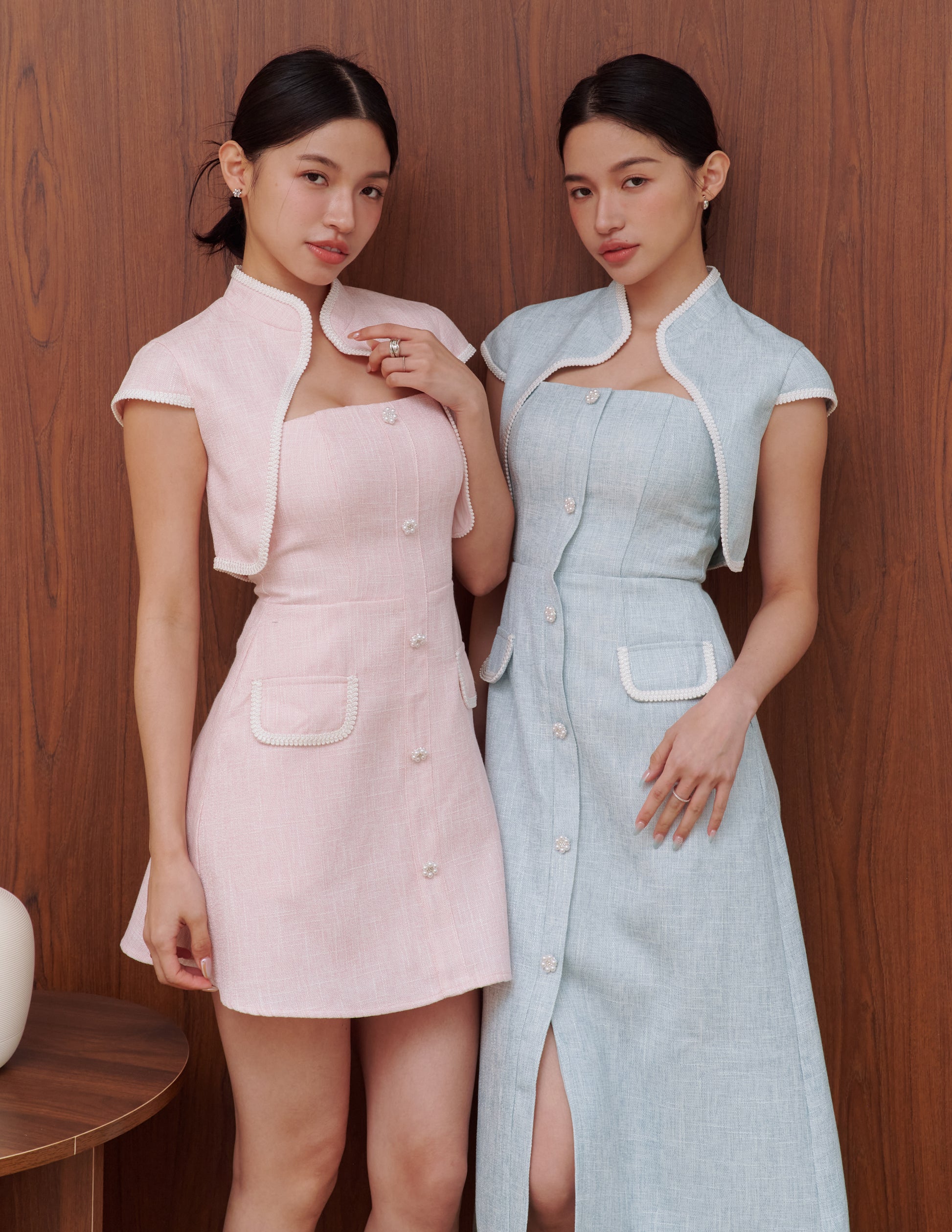 Stella Tweed Cheongsam Bolero Jacket in Blue