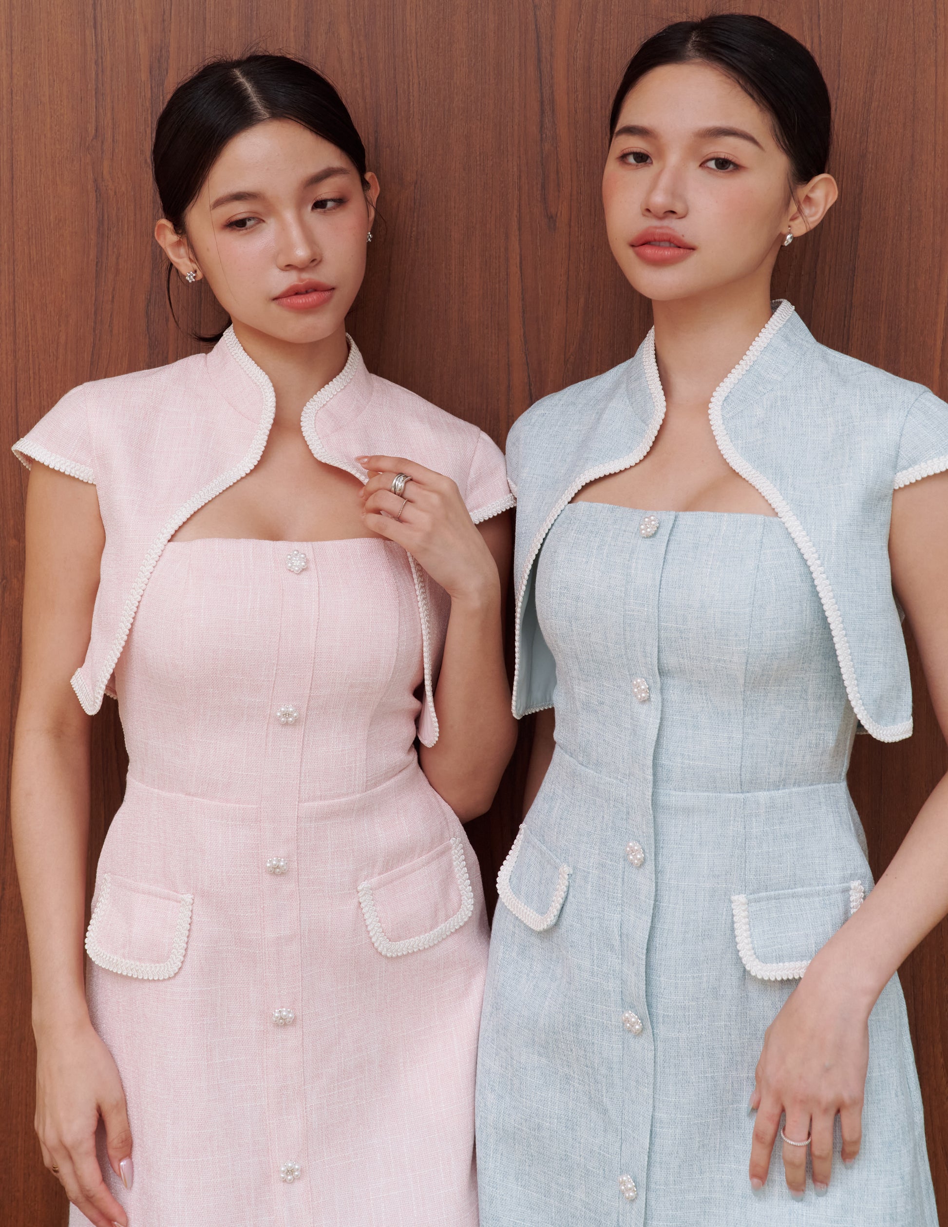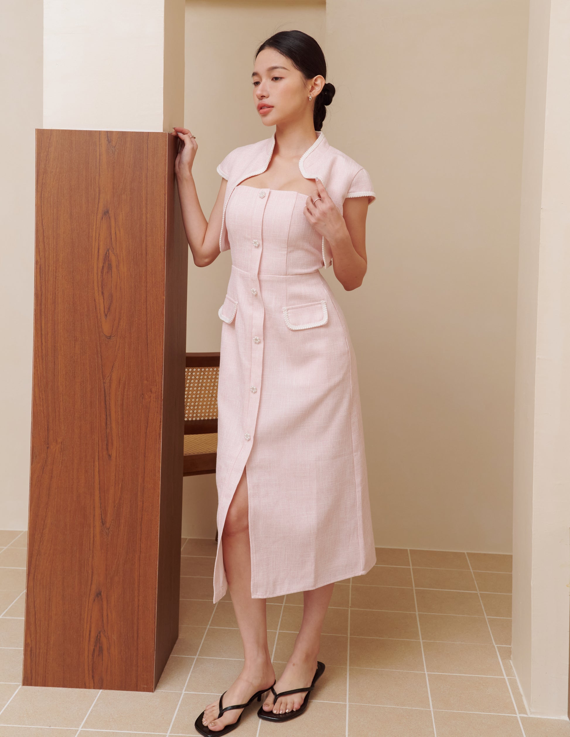 Stella Tweed Cheongsam Bolero Jacket in Pink
